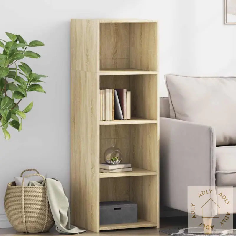 - Tidløs design: Oppbevaringshyllen har rene linjer og minimalistisk utseende med sonoma eik-finish, noe som gir et tidløst og moderne preg, enten du ønsker å fornye stua, soverommet eller setter den sammen med andre bokhyller og stående hyller.