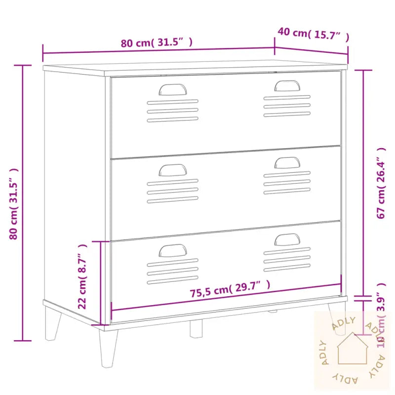Denne kommoden med skuffer har et moderne industrielt preg som vil trekke oppmerksomhet og bli et stilig midtpunkt blant dine andre møbler til hjemmet. Den kombinerer både funksjon og design, perfekt for deg som ønsker å piffe opp interiøret ditt.