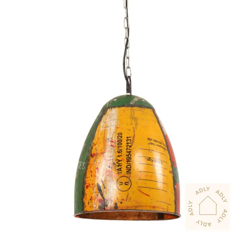 Noen små skjønnhetsfeil på lampeskjermen er forventet og del av produktets sjarm. Disse unike detaljene sørger for at hver lampe får sitt eget distinkte og røffe uttrykk, typisk for industriell stil.Lyspærer er ikke inkludert, så du står fritt til å velge den typen pære du ønsker og som passer din smak best.Farge: Flerfarget, med individuelle variasjonerMateriale: Strykejern malt for hånd med resirkulerte fargerMål på lampeskjermen: 32 x 41 cm (Diameter x H)Total høyde med kjede og jernplate: 142 cmType sokkel: E27Maksimal effekt: 25 WProdusert i henhold til lavspenningsdirektivet