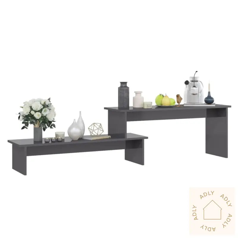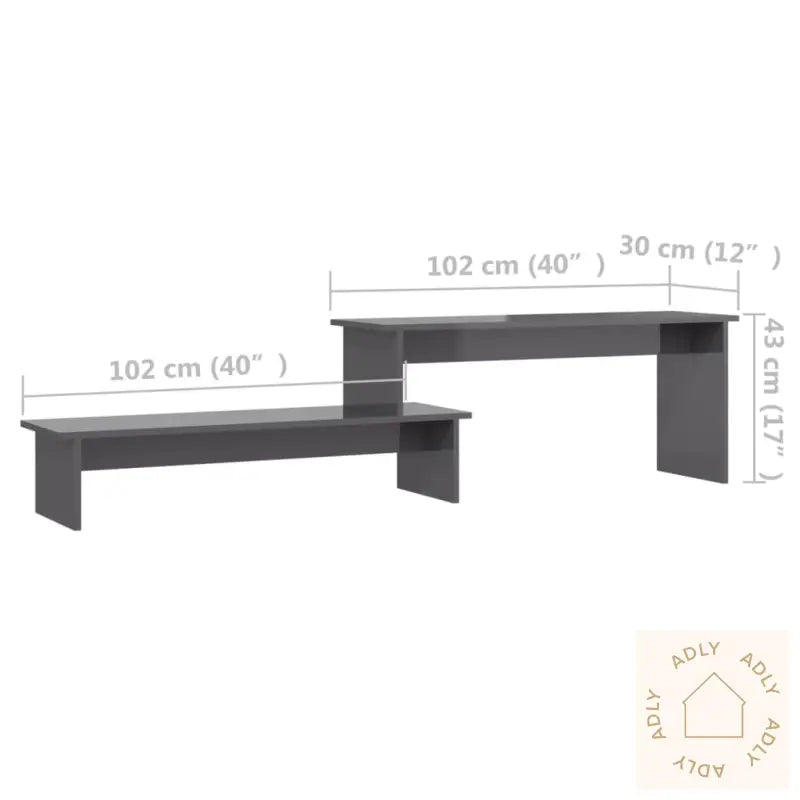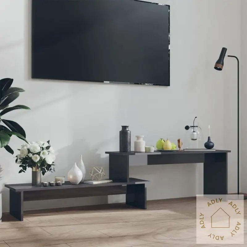 Denne TV-benken i industriell stil er et smart og funksjonelt møbel til hjemmet ditt, perfekt for deg som ønsker både praktisk oppbevaring og moderne design. Benken har 1 bunnhylle og 1 øvre hylle med justerbar lengde, så du kan enkelt tilpasse plassen etter behov eller endre uttrykket på rommet. Øvre hylle kan flyttes slik at du får frihet til å organisere TV, bokhyller og stående hyller eller pynt akkurat slik du vil. Overflaten i høyglans grå gir et elegant og stilrent preg, noe som gjør at den passer godt sammen med andre møbler og interiør i stua. Den er laget i konstruert tre, som gir god holdbarhet, og rengjøres enkelt med en fuktig klut. Dette gjør TV-benken til et ideelt valg blant møbler til hjemmet for både funksjonalitet og stil.