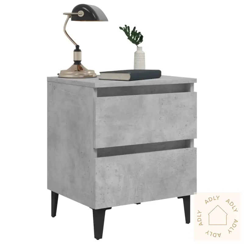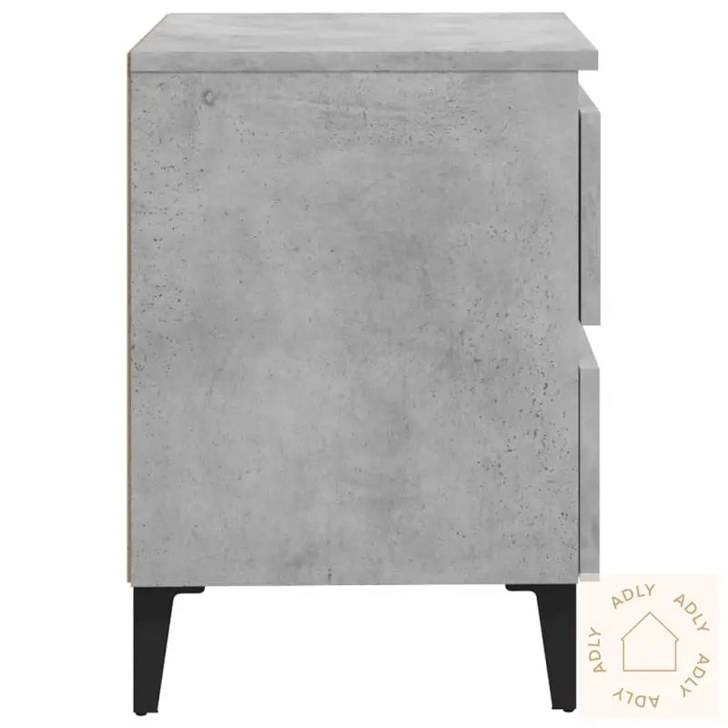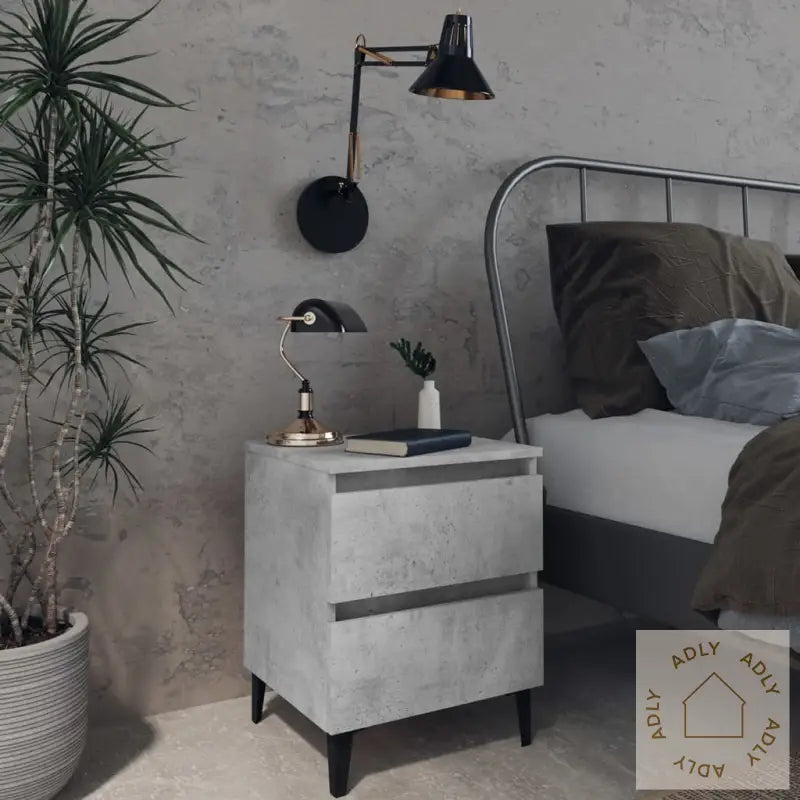 Robust ramme: Nattbordet står stødig på fire sterke treben og gir stabilitet du kan stole på hver dag.Plass til alt du trenger: De to store skuffene gir deg god plass til oppbevaring – perfekt for å holde småting, bøker eller annet organiserte og alltid lett tilgjengelige.Enkel rengjøring: Det konstruerte treverket og den slitesterke overflaten gjør at du enkelt kan holde nattbordet rent bare ved å tørke over med en fuktig klut. Praktisk for både soverom og andre oppholdsrom hvor du vil ha ekstra oppbevaringsplass.Farge: Betonggrå – en moderne tone som matcher med andre møbler som bokhyller og stående hyller.Materiale: Konstruert tre – sørger for lang levetid og robusthet.Mål: 40 x 35 x 50 cm (L x B x H)Fire solide metallben gir ekstra stabilitet og et stilig uttrykk.Montering kreves: Du monterer enkelt nattbordet selv, og skaper din egen personlige stil blant dine øvrige møbler.