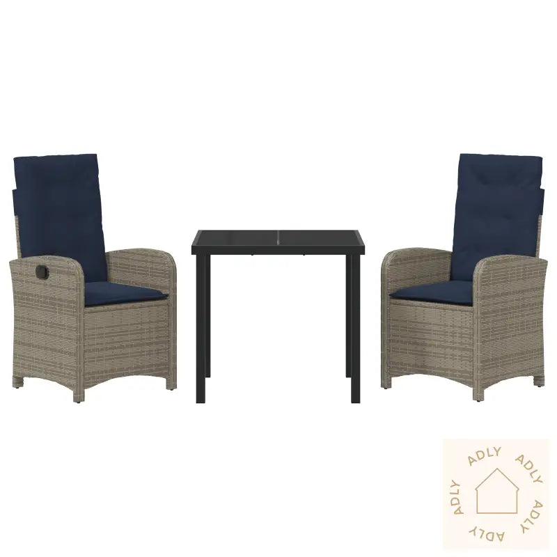 Dette settet med to justerbare hagestoler kombinerer moderne stil med komfort, og er ideelle for deg som vil slappe av utendørs. Den grå polyrotangen sammen med de marineblå putene gir et elegant og oppdatert uttrykk, noe som gjør disse hagemøblene til et flott innslag på terrassen eller balkongen. Enten du vil ha møbler til hjemmet eller spesialtilpassede møbler til uterom, er dette settet et smart valg.