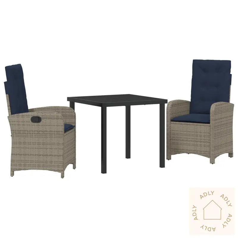 Antall gjenstander: 3Farge: GråForm: RektangulærMateriale: Syntetisk polyrotangFinish: PulverlakkertInnendørs/Utendørs: Kun utendørsTrekk inkludert: NeiRom: Hage og terrasseBatterier inkludert: NeiHodegavel inkludert: NeiKapasitet: Holder opptil 110 kg per stolMaksimalt antall personer: 2Maksimal vekt: 110 kgMontering inkludert: NeiMin-maks dimensjoner: 83-93Overflate høyde: 2 cmBen høyde: 43.5 cmSetedybde: 50 cmSitteplasser: 2Gynger: NeiStige: NeiMerke: Leveransen inneholder: 1 x hagebord, 2 x spisestolerMontering kreves: JaAnbefalt antall personer for montering: 2
