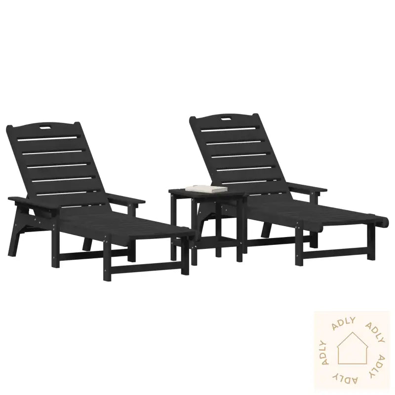 Den justérbare ryggstøtten gjør det ekstra enkelt å finne den beste hvileposisjonen. Det gir optimal støtte, uansett om du vil lese, sole deg, eller lene deg bakover og duppe av litt.Solsengene er laget av slitesterk HDPE (høy tetthet polyethylene), designet for å være både vann- og værbestandige. De tåler norsk klima, holder seg fine år etter år og er lette å vedlikeholde – ideelle som holdbare møbler til hjemmet ditt utendørs.De ergonomiske armlenene gir deg bedre støtte og økt komfort, slik at loungetiden blir enda hyggeligere, enten du er alene eller har venner på besøk.Designet sikrer god luftstrøm, noe som ikke bare ser moderne ut, men også gjør disse møblene ekstra behagelige når sola steker.Settet er raskt å montere – alt du trenger er en skrutrekker og litt hjelp fra én venn, så kan du lene deg tilbake uten stress og nyte nye utendørsmøbler på kort tid.Antall varer: 3Farge: SvartForm: RektangulærMateriale: Syntetisk plastFinish: Tre tekstur finishInnendørs/Utendørs: Kun utendørsTrekk inkludert: NeiRom: Garten und TerrassegBatterier inkludert: NeiKapasitet: Inkluderer 3 solsengerMaksimalt antall personer: 1 per solsengMontering inkludert: NeiMin-Maks dimensjoner: 0/80Overflatehøyde: 2 cmBenhøyde: 35 cmSitte dybde: 60 cmSittekapasitet: 1Svinger: NeiLeveransen inneholder: Sett med 3 utendørsstolerMontering kreves: JaAnbefalt antall mennesker for montering: 2