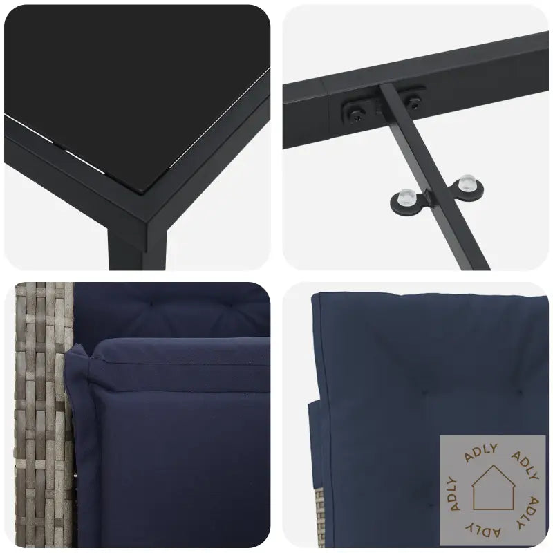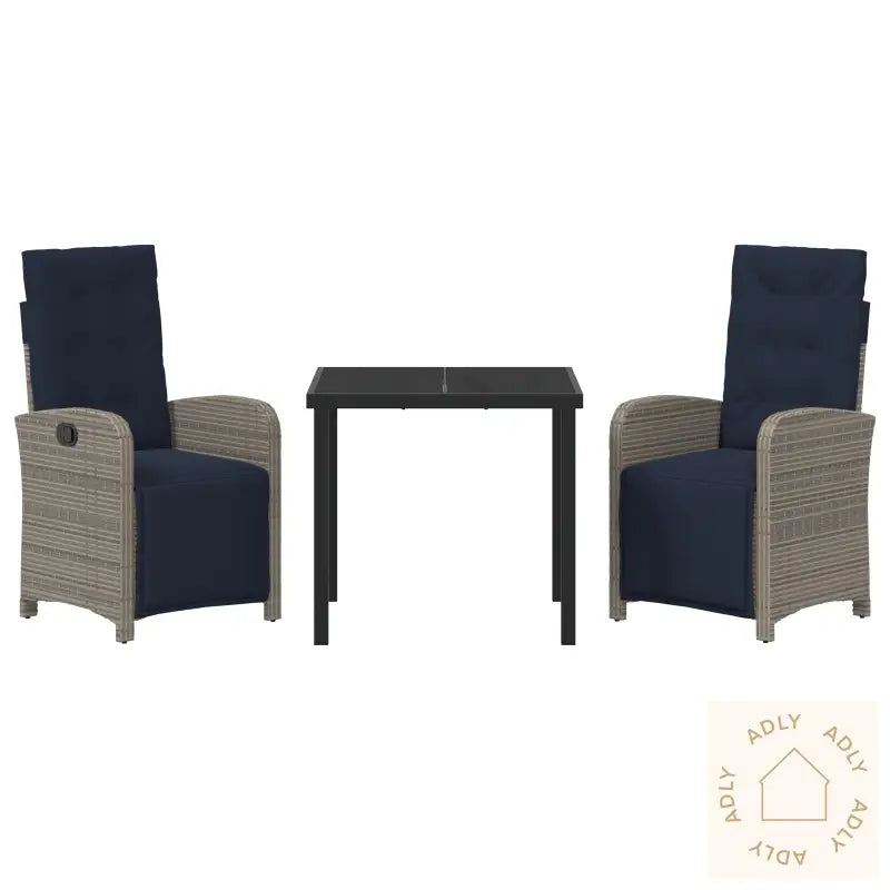 Dette settet med to recliner hagemøbler med fotstøtter er laget for deg som setter pris på både moderne stil og god komfort – perfekt for utendørs avslapning. De elegante stolene i grå poly rattan med marineblå puter gir et friskt uttrykk til terrassen, balkongen eller hagen, og kombinerer minimalistisk design med praktisk funksjon. Poly rattan er et syntetisk materiale som gir hagemøblene ekstra robusthet og lang levetid – det ser ut som naturlig rotting, men tåler vær og vind mye bedre.