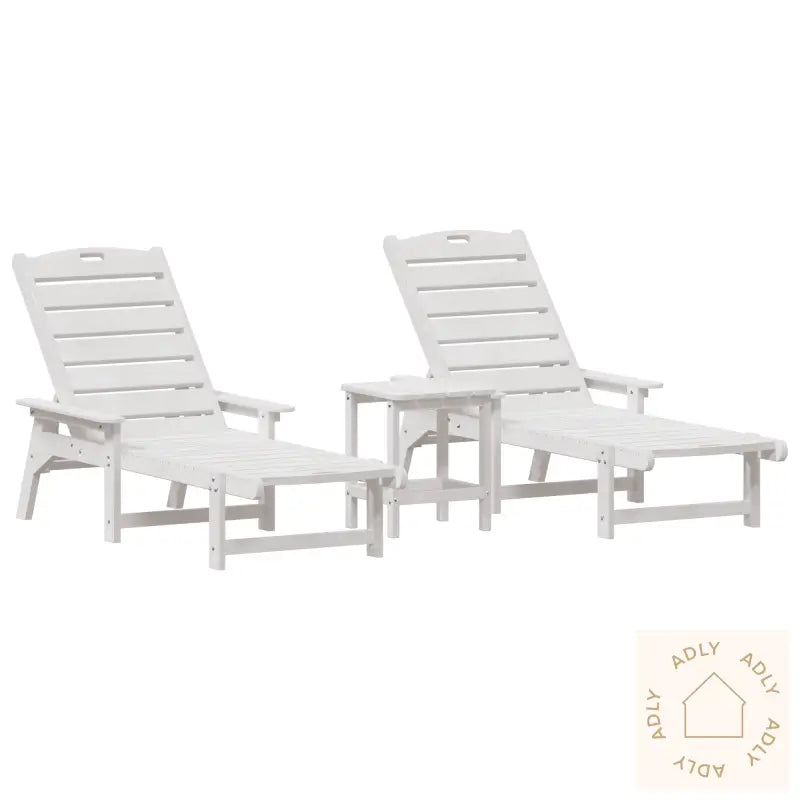Dette justerbare solsengsettet gir deg to stilige solsenger og et praktisk sidebord – perfekt for deg som elsker å nyte livet ute. Solsengene har et moderne lamelldesign med frisk hvit matt finish som frisker opp ethvert uterom, enten det er hagen, terrassen, eller bassengkanten. Her får du et koselig og elegant sted for soling, rolige stunder eller hyggelig samvær utendørs. Dette settet av utendørsmøbler kombinerer komfort, funksjonalitet, og estetikk – en super oppgradering til alle som vil gjøre uteplassen litt ekstra spesiell og komfortabel.