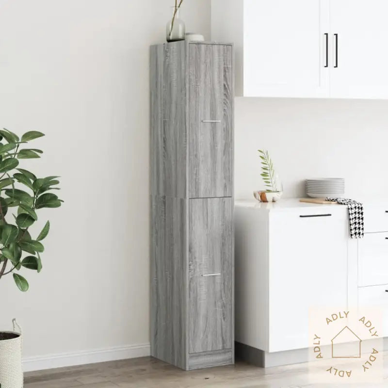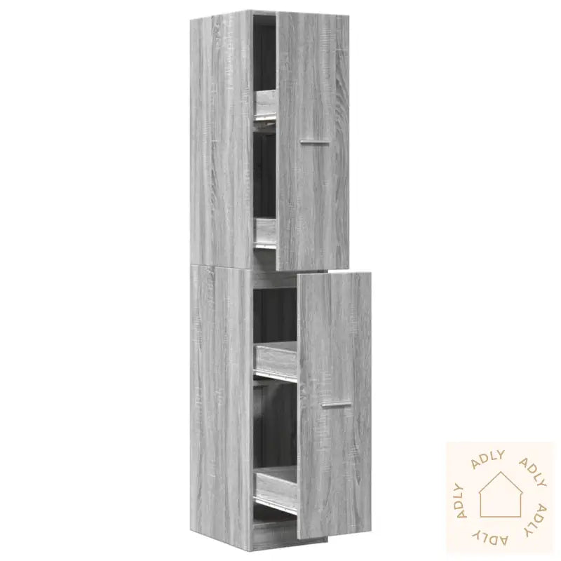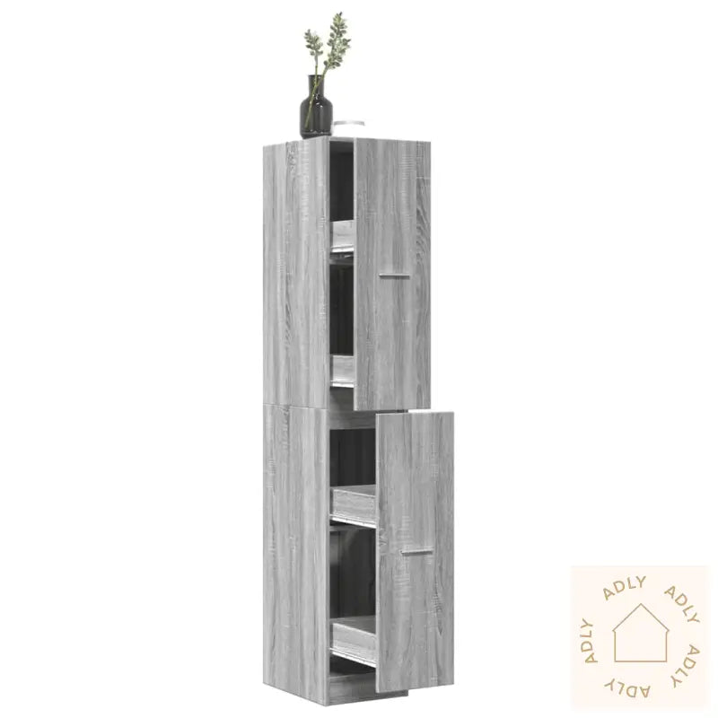 Stabilt og slitesterkt materiale: Skapet er laget av konstruert tre, et pålitelig materiale kjent for sin holdbarhet og stabilitet. Den glatte overflaten gjør det lett å holde rent, og materialet tåler fuktighet, vridning og sprekker – ideelt for deg som ønsker robuste møbler som varer lenge, enten det er på kjøkkenet, kontoret eller i stuen.Rikelig med oppbevaringsplass: Med flere romslige hyller og fire skuffer hjelper dette apotekskapet deg å holde tingene godt organisert, fri for støv og lett tilgjengelig. Perfekt for alt fra kokebøker og serviser til kontorrekvisita og annet som bør ha sin faste plass – et smart valg blant bokhyller og stående hyller.Enkelt å bruke: Skuffene beveger seg jevnt på solide metallskinner, og stilrene håndtak gjør det enkelt å åpne og lukke. Praktsik når du raskt skal finne det du leter etter – hverdagsluksus for hele familien.Allsidig bruk: Apotekskapet kan brukes overalt hvor du trenger ekstra lagringsplass, enten som apotekskap, oppbevaringsskap eller kjøkkenskap. Flott til kjøkken, stue og kontor, og en allsidig løsning i møte med forskjellige oppbevaringsbehov.Advarsel: