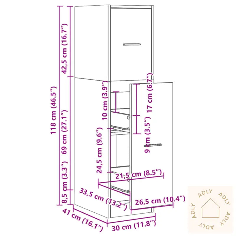 Allsidig i bruk: Dette apotekskapet kan brukes akkurat der du vil ha det: på kjøkkenet som et smart kjøkkenskap, på kontoret til papirarbeid, eller i stuen for ekstra orden. Det passer hjemmets øvrige møbler og kan også kombineres med bokhyller og stående hyller for en komplett innredningsløsning.Advarsel: