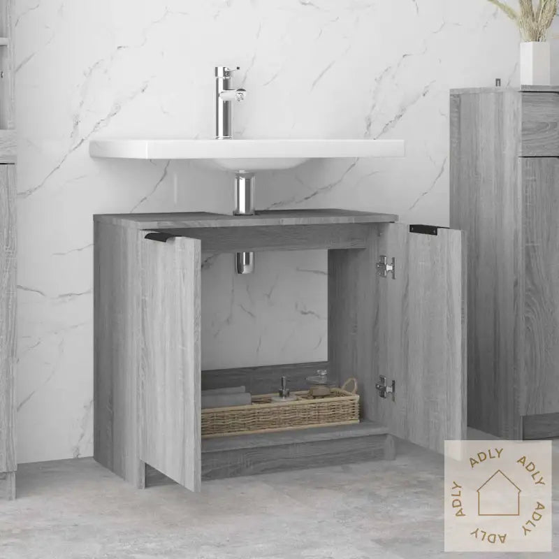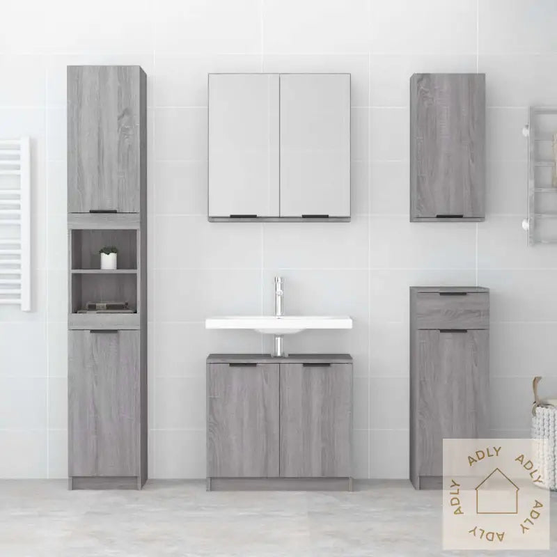 - Stilig design: Med rene linjer og et elegant, tidløst design glir dette baderomsskapet naturlig inn sammen med andre møbler til hjemmet. Fargen i grå eik er lun og moderne, enkel å matche med både bokhyller, stående hyller eller annet interiør.