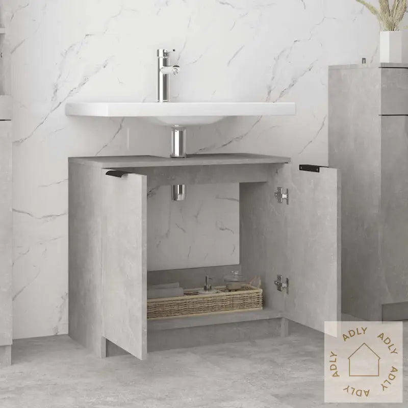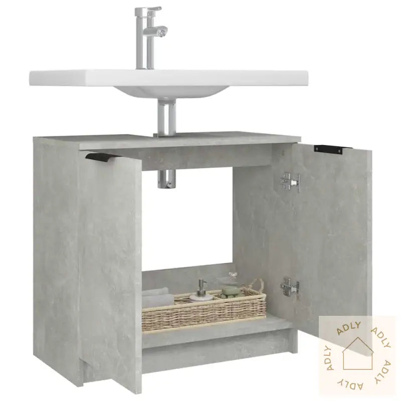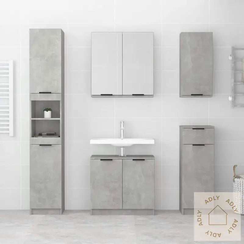 Elegant design: Med sitt minimalistiske uttrykk og rene linjer passer dette oppbevaringsskapet like godt i små som store bad. Den betonggrå fargen gir et moderne løft til innredningen og matcher mange ulike stiler på møbler til hjemmet.Advarsel: