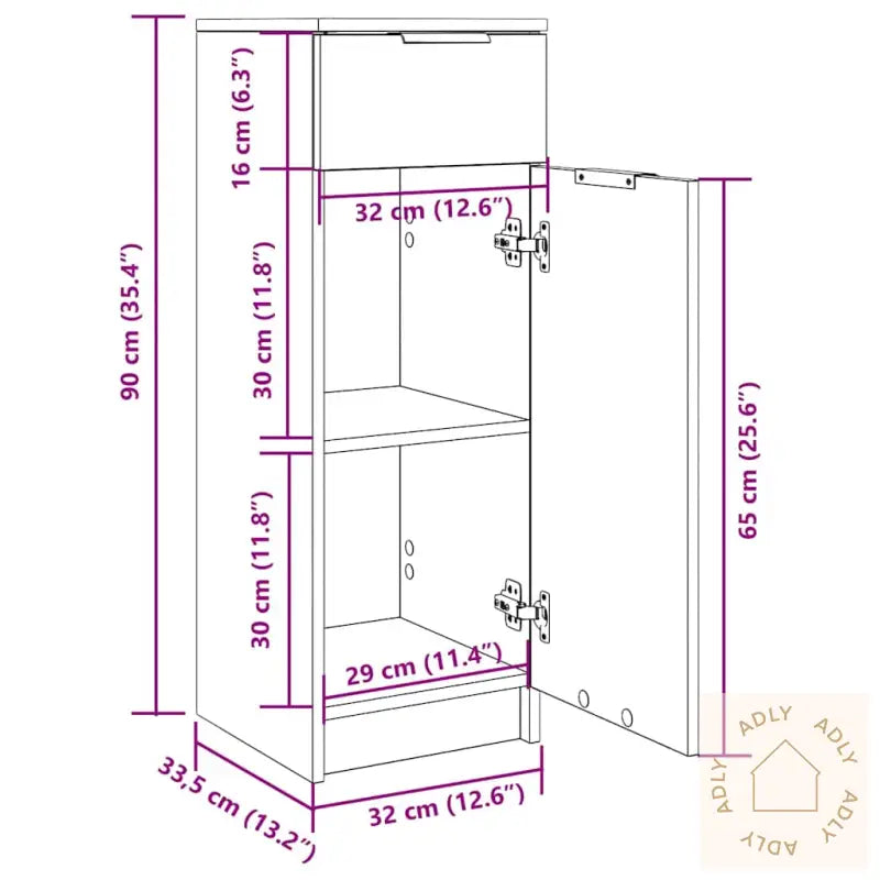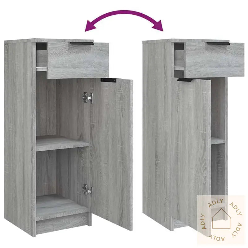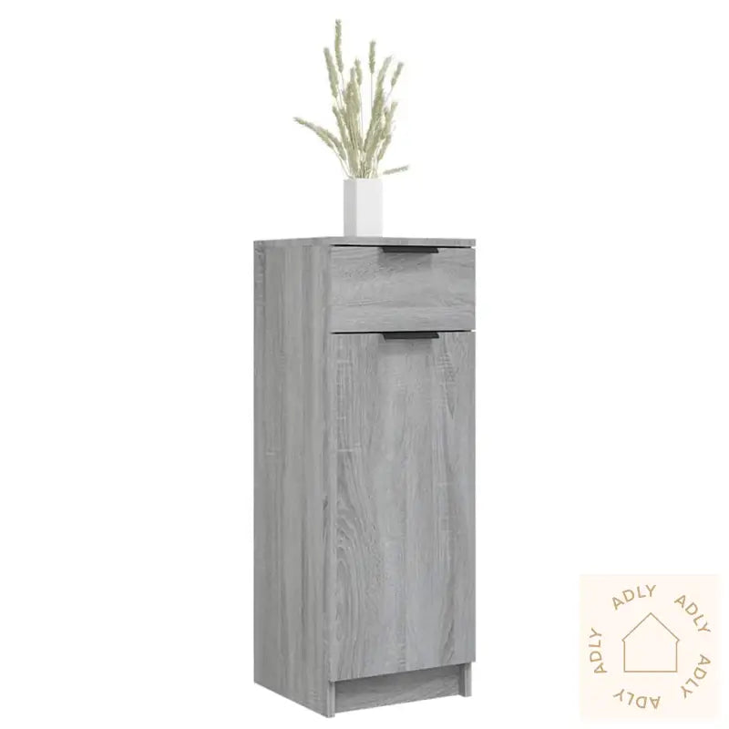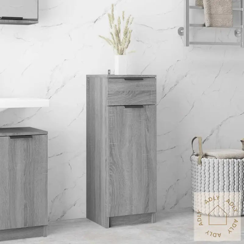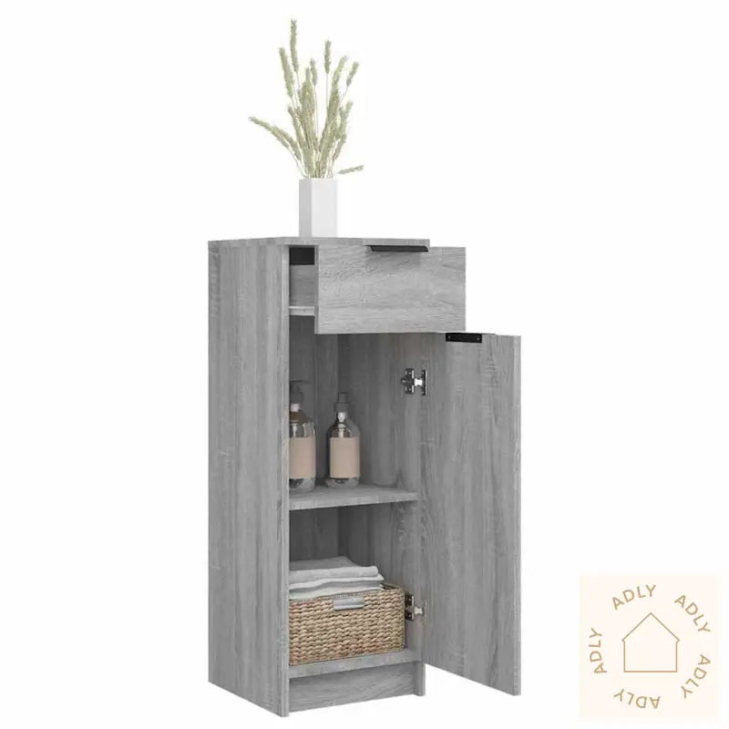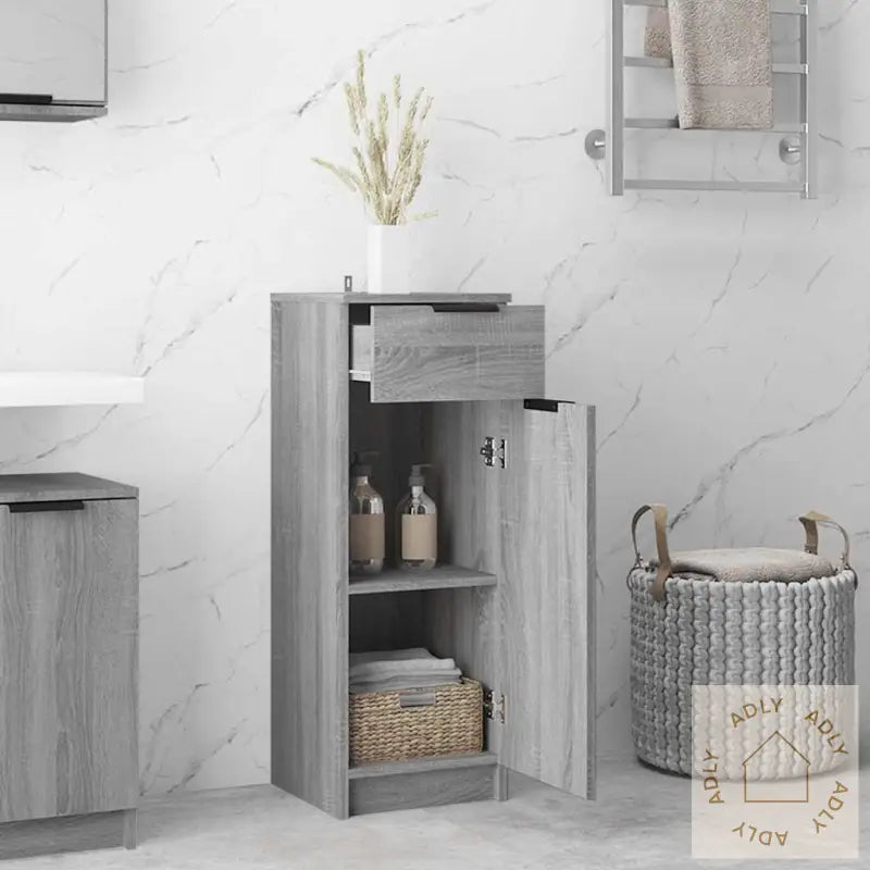 Solid materiale: Skapet er laget av konstruert tre, noe som gir en glatt overflate og høy kvalitet. Dette materialet er kjent for sin styrke, stabilitet og gode motstand mot fuktighet – perfekt til badet hvor møbler ofte utsettes for vannsøl.Rikelig med lagringsplass: Baderomsskapet gir deg allsidig og praktisk oppbevaring med både en romslig skuff og et skap med dør. Her får du god plass til å lagre alt fra toalettsaker til rengjøringsmidler, slik at badet ser rent og organisert ut.Stilig design: Skapets rene linjer og tidløse grå eikefinish gjør det lett å kombinere med både klassiske og moderne møbler. Det passer like godt sammen med bokhyller og stående hyller resten av huset som til andre hagemøbler dersom du ønsker en helhetlig stil.Advarsel: