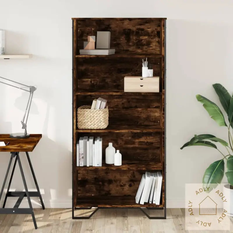 For å forhindre at produktet velter, bør du bruke den medfølgende festeanordningen for ekstra sikkerhet.Farge: Røkt eikMateriale: Konstruert treMål: 80 x 31 x 169 cm (B x D x H)Maksimal total lastekapasitet: 70 kgMaksimal bæreevne per laminat: 15 kgMed 5 åpne romMontering kreves: Ja