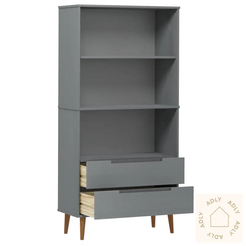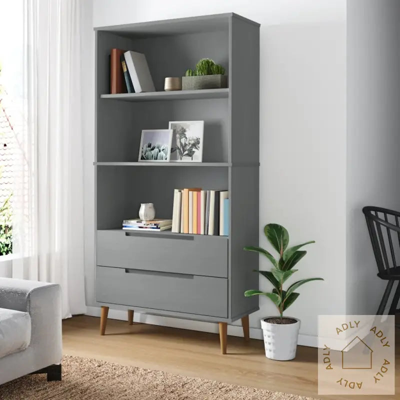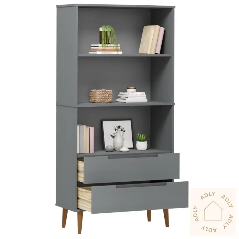 Heltre furu: Bokhyllen er laget av heltre furu, et slitesterkt og naturlig materiale med tydelig rett årring og karakteristiske knuter. Dette gir ikke bare styrke og lang levetid, men også et rustikt og varmt uttrykk som gjør møbelet til et blikkfang i rommet.UV-lakk: Overflaten er behandlet med UV-lakk, noe som gir en eksklusiv finish som føles myk og luksuriøs å ta på. UV-lakken beskytter treverket ekstra godt mot slitasje og holder fargen levende lenger.Rikelig med lagringsplass: Med 3 åpne rom og 2 praktiske skuffer gir denne bokhyllen deg masse smart lagringsplass. Du får plass til bøker, magasiner, små dekorasjoner eller multimediautstyr – alt kan holdes ryddig og lett tilgjengelig, samtidig som bokhyllen bidrar til å løfte innredningen.Advarsel: