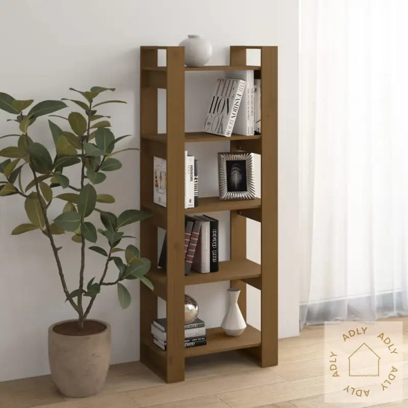 For å forhindre at bokhyllen velter, må du alltid bruke de medfølgende veggfestene. Sikkerhet kommer først – særlig i hjem med barn eller kjæledyr.Farge: honningbrunMateriale: heltre furuMål: 60 x 35 x 160 cm (B x D x H)Kan brukes som bokhylle eller romdelerMontering kreves: jaLegal Documents: