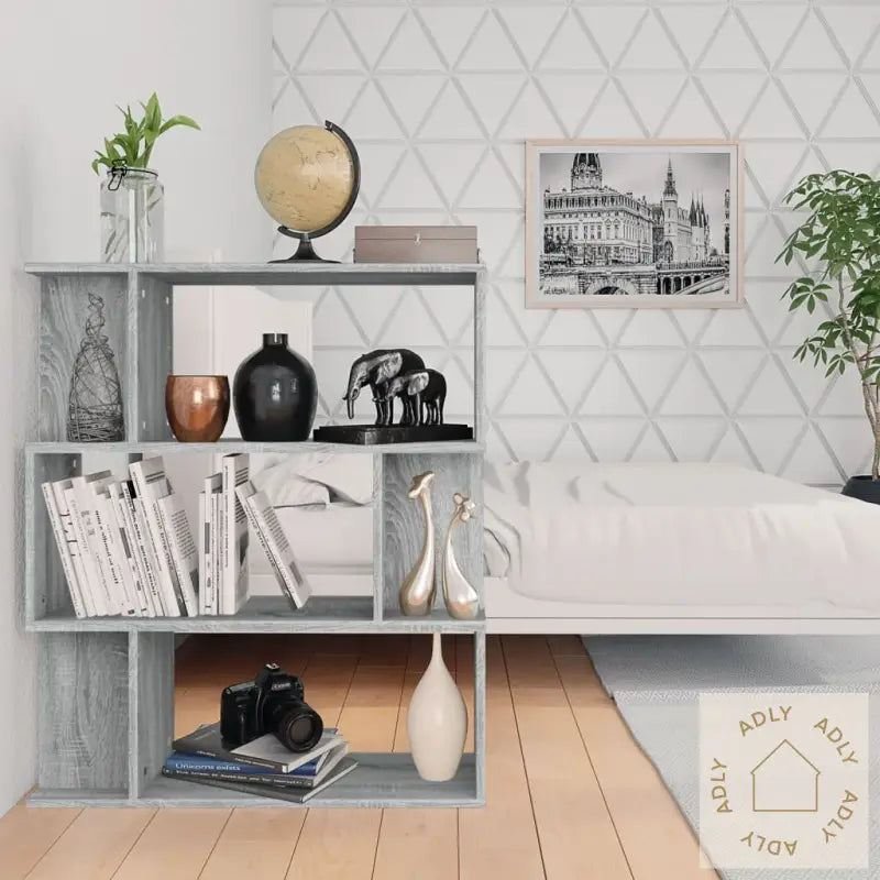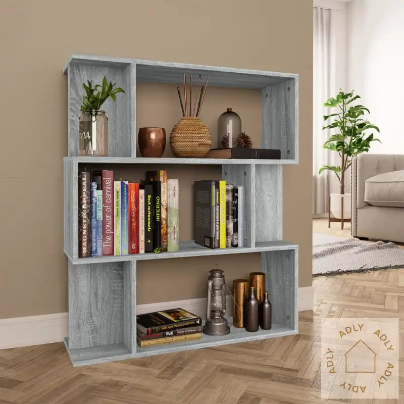 Alle produkter leveres med en brukervennlig monteringsveiledning i esken, slik at du enkelt kan sette sammen møblene selv hjemme.Farge: Grå eik, som lett lar seg kombinere med andre moderne møbler til hjemmet eller hagemøbler for en harmonisk stil.Materiale: Konstruert treMål: 80 x 24 x 96 cm (B x D x H)Kan brukes som både bokhylle og romdeler etter behovLegal Documents: