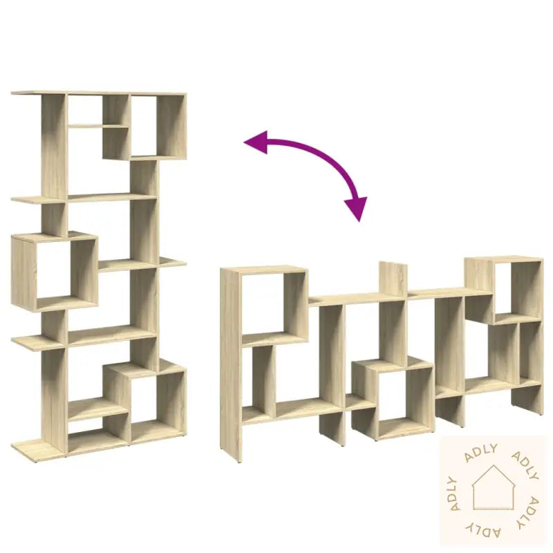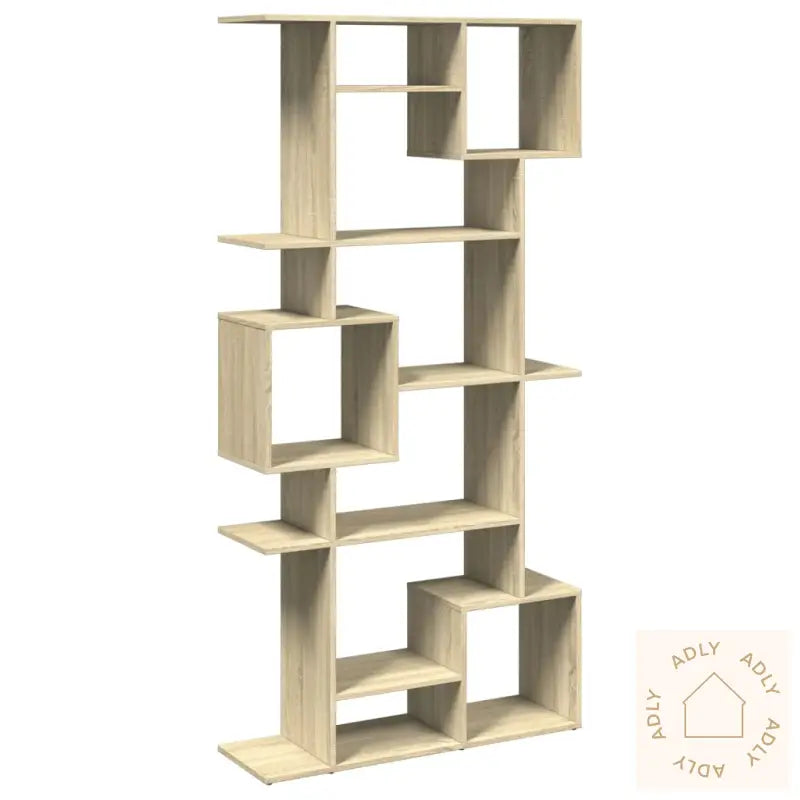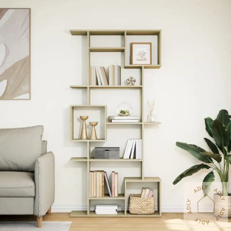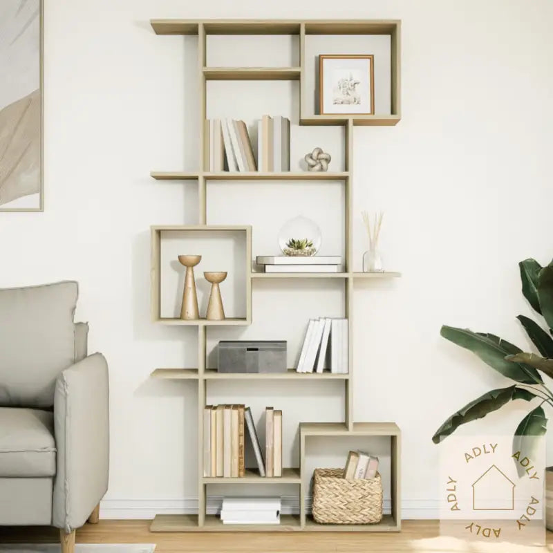 Holdbart materiale: Bokhyllen er laget av konstruert treverk av høy kvalitet i finishen sonoma eik. Overflaten er glatt, og materialet gir styrke og stabilitet sammen med god motstandsdyktighet mot fuktighet – noe som sikrer lang levetid.Rikelig med oppbevaringsplass: Med 9 åpne og romslige hyller får du masse plass til å organisere magasiner, bøker, DVD-er, multimediautstyr og dekorative ting. Alt holdes pent og lett tilgjengelig, noe som hjelper deg å holde stuen, kontoret eller soverommet ryddig.Allsidig hylleløsning: Bokhyllen kan også brukes som en smart romdeler om du ønsker å skape soner i et rom – ideelt for åpne planløsninger eller mindre leiligheter der funksjon og stil må gå hånd i hånd.Enkel å vedlikeholde: Hyllen krever lite vedlikehold og rengjøres raskt med en fuktig klut. Perfekt for travle hjem!Advarsel: