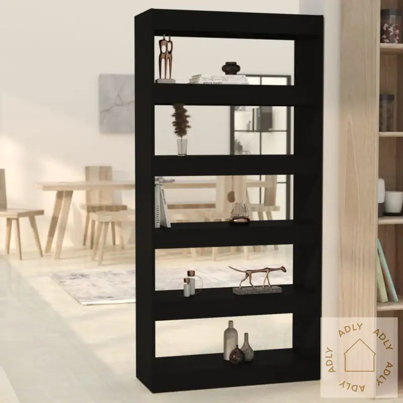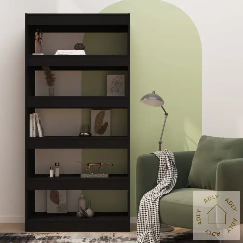 Farge: svartMateriale: konstruert treMål: 80 x 30 x 166 cm (B x D x H)Kan brukes som bokhylle eller romdelerMontering kreves: ja
