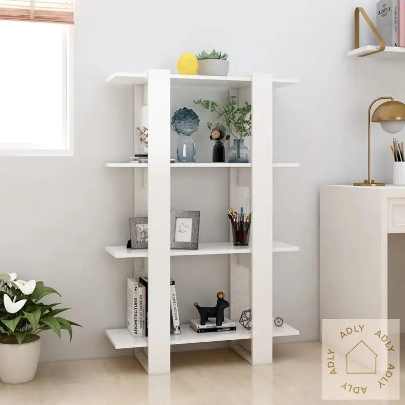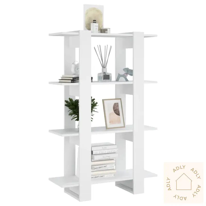 Farge: hvitMateriale: konstruert treMål: 80 x 30 x 123,5 cm (B x D x H)Kan brukes både som klassisk bokhylle eller praktisk romdelerMontering kreves: jaADVARSEL: For å forhindre at produktet velter, må medfølgende festemidler for vegg brukes.
