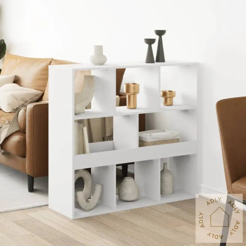 Slitesterkt materiale: Bokhyllen er laget av konstruert tre av høy kvalitet som gir en jevn overflate, solid stabilitet og god motstand mot fukt – dette gjør den ekstra holdbar og godt egnet til daglig bruk hjemme.Rikelig med oppbevaringsplass: Med 8 romslige hyller får du masse plass til bøker, magasiner, DVD-er, multimediaenheter eller andre pyntegjenstander. Her kan du enkelt organisere dine favoritting og holde stuen, kontoret eller soverommet ryddig.Allsidig hylle: Denne bokhyllen fungerer ikke bare til oppbevaring – du kan også bruke den som en moderne romdeler for å skape soner i hjemmet på en stilig måte. Bokhyllen glir sømløst inn sammen med andre stående hyller eller hagemøbler, og gir deg fleksible innredningsmuligheter.Lett å rengjøre: Overflaten tørkes enkelt ren med en fuktig klut, slik at hyllen beholder sitt friske utseende år etter år.Advarsel: