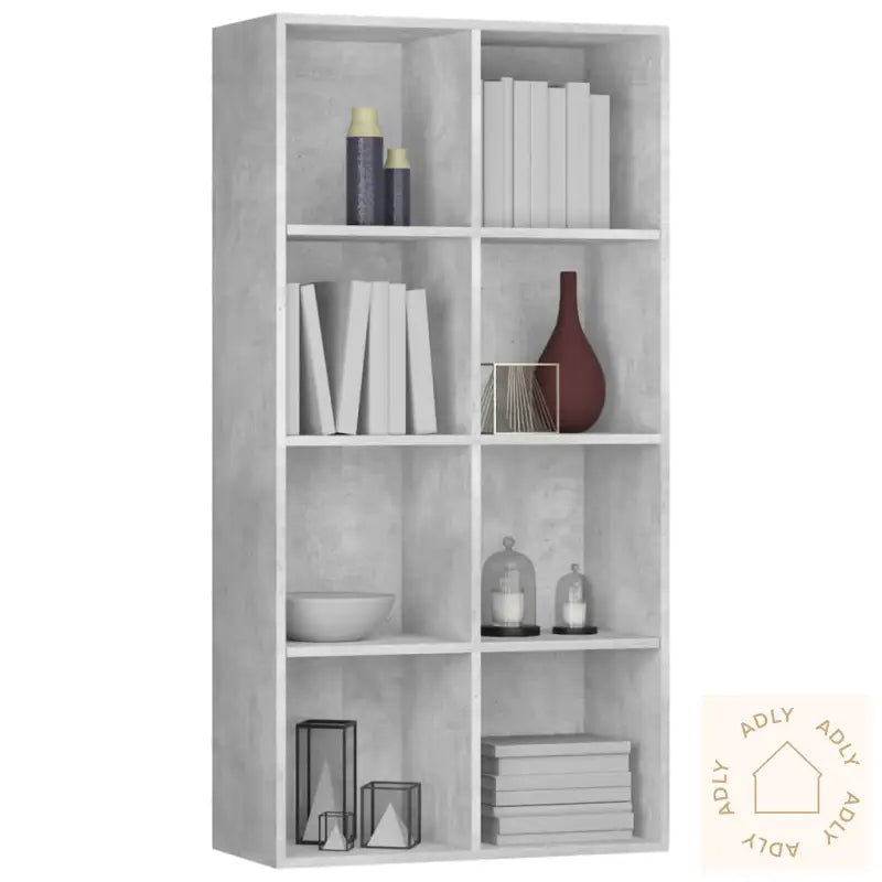 Farge: betonggråMateriale: konstruert treMål: 66 x 30 x 130 cm (B x D x H)Med 8 romKan plasseres horisontalt som skjenkMonteringsmaterialer inkludert