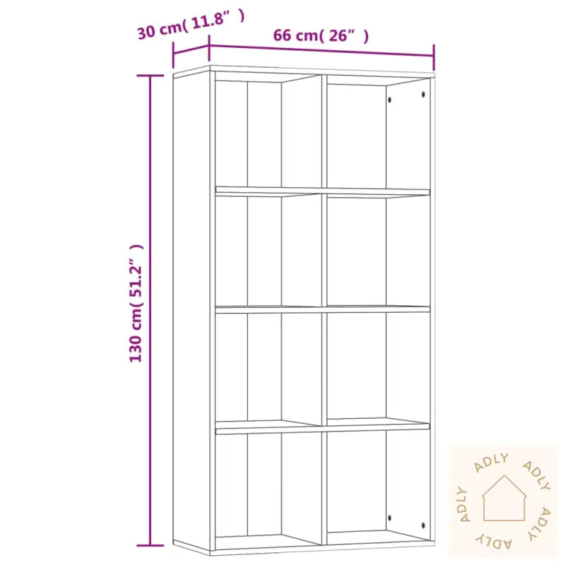 Hyllen er laget av slitesterkt konstruert tre, som gir stabilitet og sikrer lang levetid. Bokhyllen har 8 romslige hyller som gir deg rikelig med plass til å organisere bøker, blader, DVD-er eller multimediautstyr – alt på ett sted og lett tilgjengelig. Dette gir deg muligheten til å holde hjemmet ryddig samtidig som du får fremhevet dine favorittbøker eller pyntegjenstander.