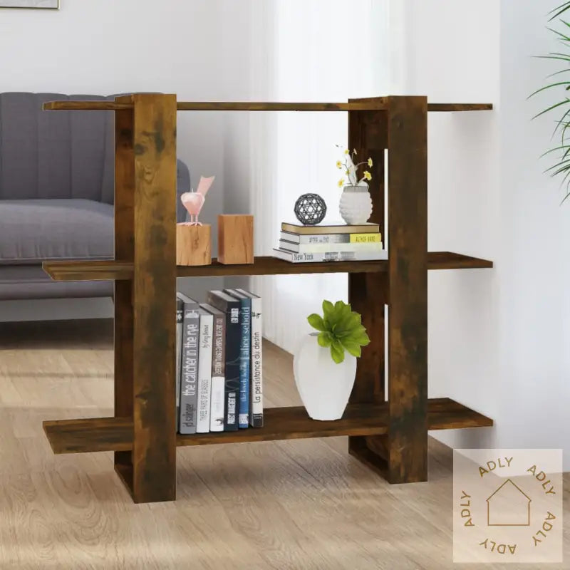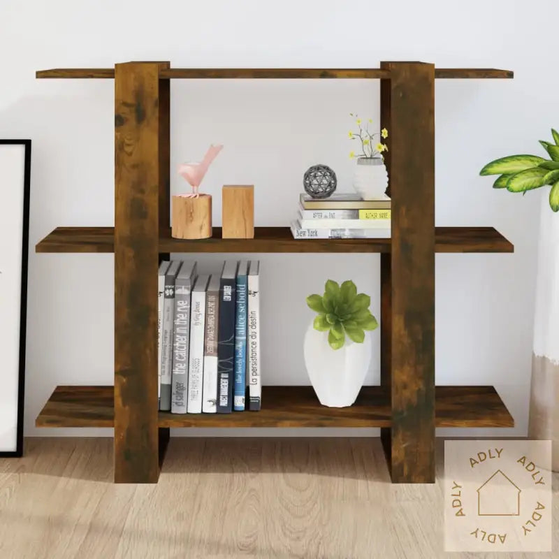 Farge: røkt eikMateriale: konstruert treSamlet mål: 100 x 30 x 87 cm (B x D x H)Mål hver hylle: 100 x 27 x 35 cm (B x D x H)Kan brukes som bokhylle eller romdelerMontering kreves: jaADVARSEL: For å unngå velt må medfølgende festemidler for vegg brukes.