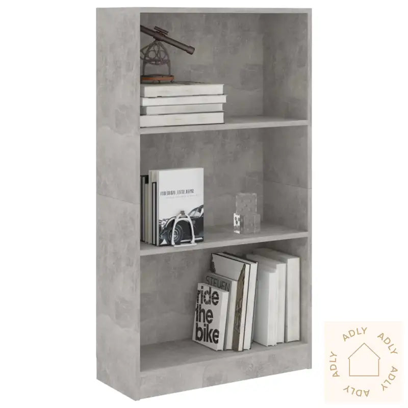 Farge: betonggråMateriale: konstruert treMål: 60 x 24 x 109 cm (B x D x H)Med 3-lags designMontering kreves: jaADVARSEL: For å forhindre at produktet velter, må medfølgende festemidler for vegg brukesVennligst merk: Skrue(r) og plugg(er) for innsiden av veggen er ikke inkludert. Finn og bruk skrue(r) og plugg(er) som passer for veggene dine. Hvis du er usikker, søk profesjonell hjelp. Les og følg alle trinnene i instruksjonen nøye.