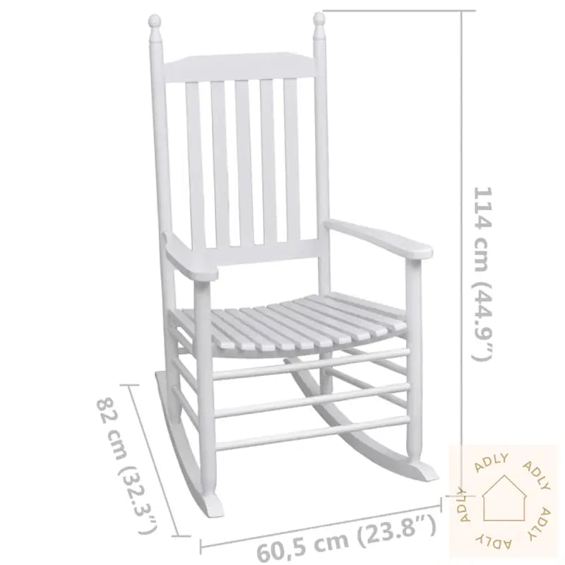 Slapp av i vår gammeldagse, solide gyngestol av tre – den perfekte kombinasjonen av komfort og klassisk stil. Med sitt elegante og tidløse design passer denne gyngestolen sømløst inn i de fleste interiørstiler, enten du ønsker sjarmerende møbler til hjemmet eller robuste hagemøbler til uterommet ditt.