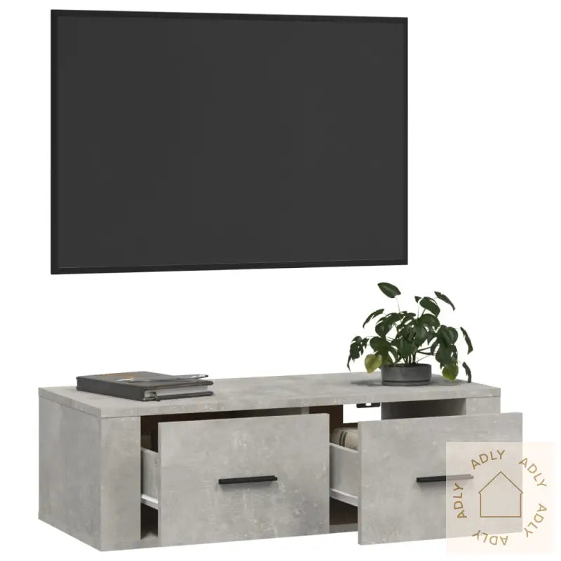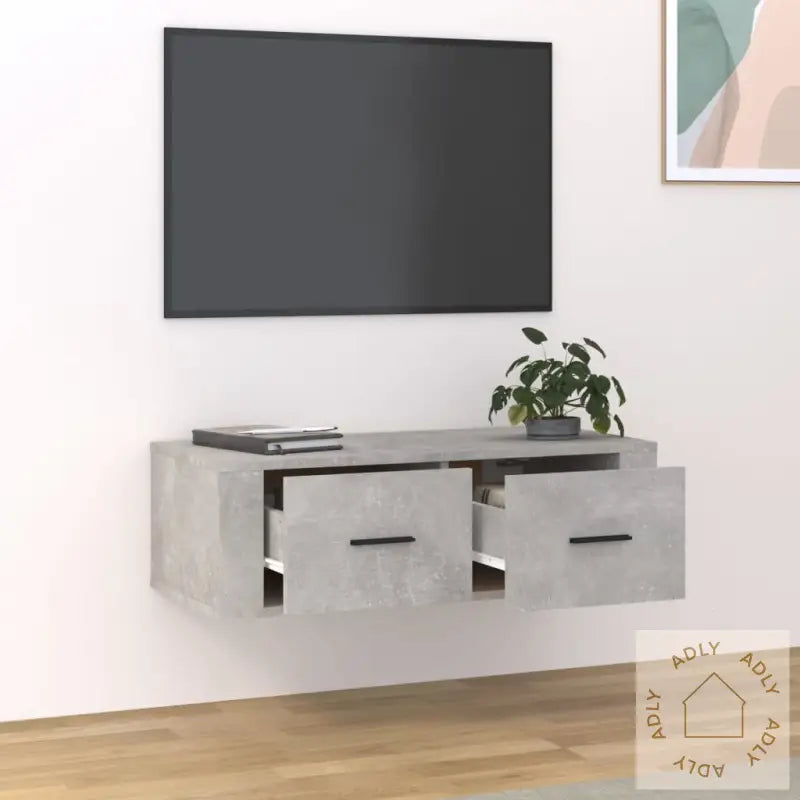 Alle deler og monteringsveiledning følger med i esken, slik at du kommer raskt i gang med oppsettet av din nye TV-benker.Skrue(r) og plugg(er) for montering i vegg må skaffes separat, og bør velges ut fra veggtypen hjemme hos deg. Sjekk alltid hvilke festemidler som passer best til veggene dine, og vær nøye med å følge monteringsinstruksjonene.Farge: betonggrå – en moderne og tidløs farge som matcher enkelt med andre møbler, inkludert hagemøbler og bokhyller.Materiale: Konstruert tre gir styrke og lang levetid.Mål: 80 x 36 x 25 cm (B x D x H) – en kompakt størrelse som passer godt til ulike romstørrelser.Maksimal lastekapasitet (totalt): 60 kg – så du trygt kan plassere både TV, høyttalere og dekorative elementer.