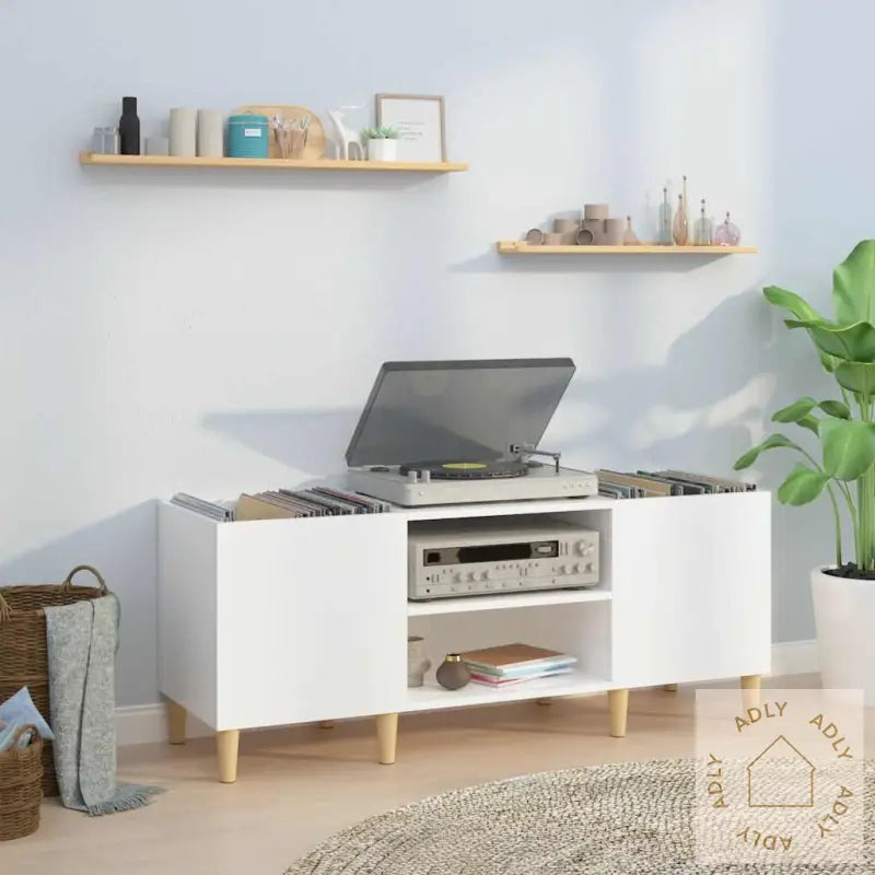 Slitesterkt materiale: Benken er laget av konstruert tre som gir en glatt, solid overflate. Dette materialet er ikke bare robust og stabilt, men også motstandsdyktig mot fukt, så du får et møbel som holder seg pent lenge.Rikelig lagringsplass: Med sitt romslige skap får du god plass til LP-plater, slik at musikksamlingen din blir både synlig, lett tilgjengelig og organisert – perfekt for vinylentusiaster som vil ha alt på ett sted.Solid topp: Den robuste toppen gir perfekt underlag for platespilleren din eller ekstra elektronikk. Her får du også plass til dekorative elementer, slik at møbelet både er funksjonelt og blir en naturlig del av ditt møblerte hjem.Flere funksjoner: Hifi-benken er utrolig allsidig. Bruk den som TV-benk eller oppbevaringsmøbel i stuen, eller som arkivskap på kontoret. Et smart valg for deg som liker fleksible møbler til hjemmet.Treføtter: Stødige treføtter i heltre eukalyptus gir benken et naturlig preg, passer rett inn i et norsk hjem, og sørger for god stabilitet.Farge: høyglans hvitMaterialer: konstruert tre, heltre eukalyptusMål: 121 x 38 x 48 cm (B x D x H)Montering kreves: ja