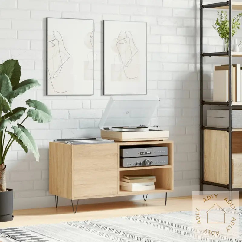 Oppbevar og vis frem vinylplatene dine på en stilig og praktisk måte med denne klassiske hifi-benken, perfekt som et moderne tilskudd til møbler til hjemmet.