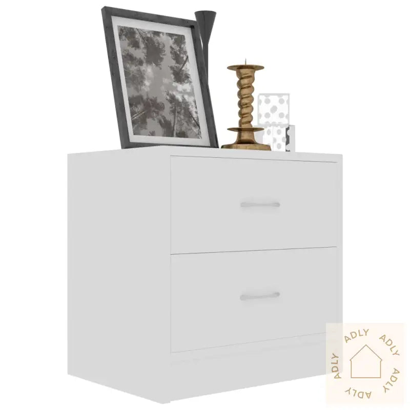 Nattbordet er laget av kvalitets konstruert tre, noe som gir både soliditet og lang levetid. Dette praktiske og allsidige møbelet kan brukes både som nattbord på soverommet eller som et lite sofabord i stuen, alt etter hva du trenger. Med to romslige skuffer får du rikelig med lagringsplass, perfekt for å holde magasiner, bøker, fjernkontroller eller andre småting samlet og organiserte. Det er enkelt å holde rent – bare tørk over med en fuktig klut, så ser det straks pent ut igjen.