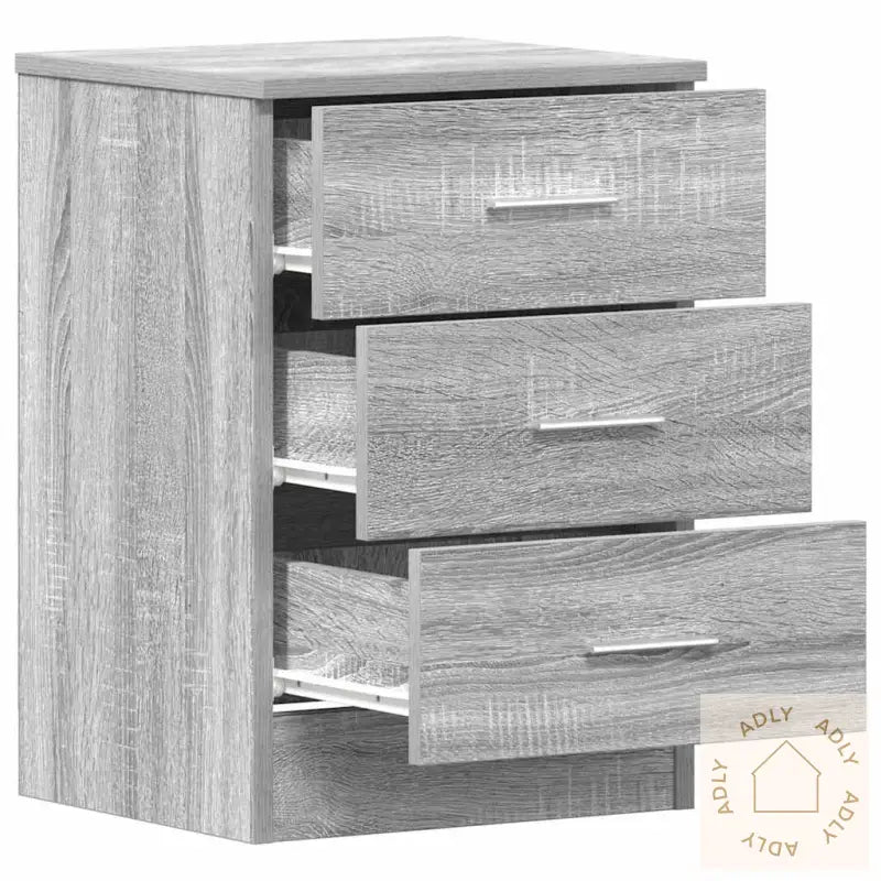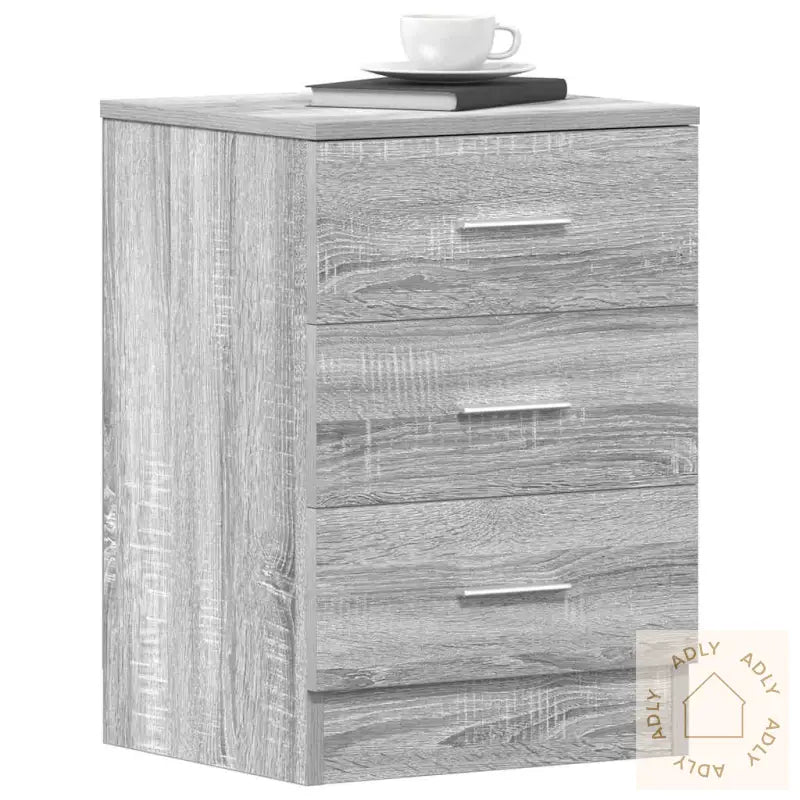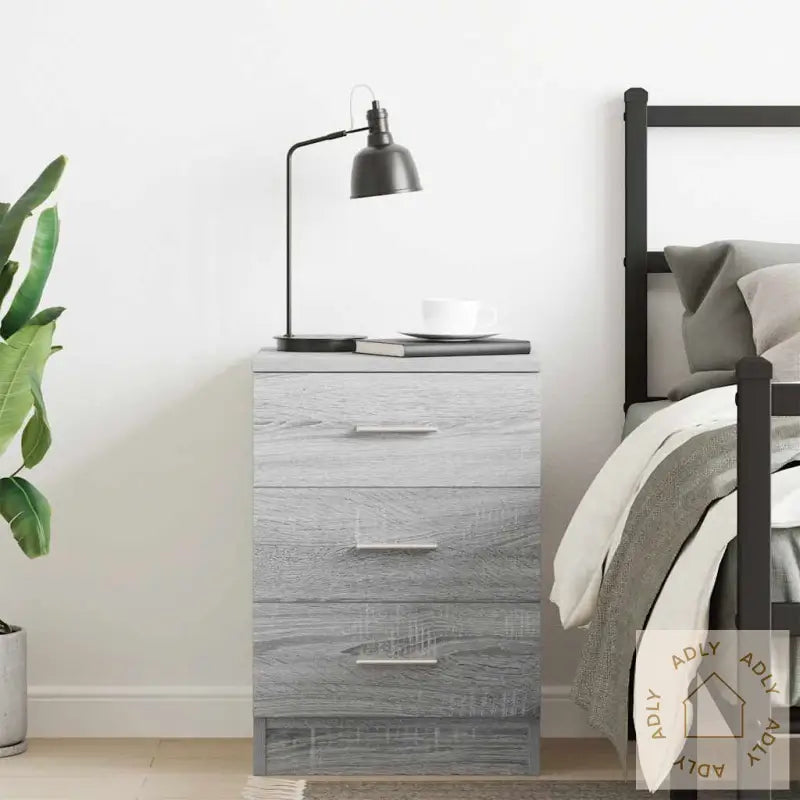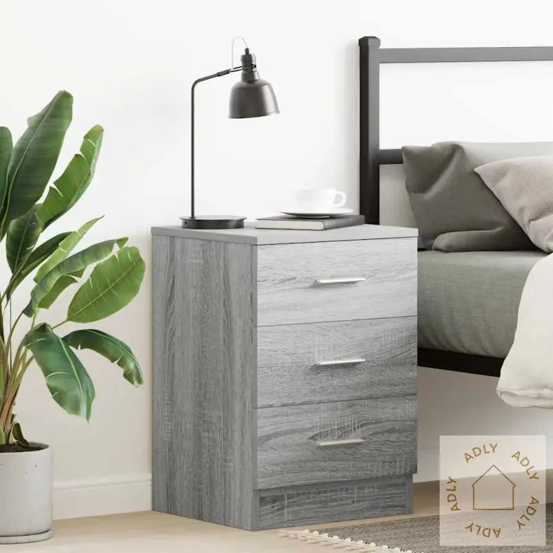 Det følger med monteringsveiledning, slik at du enkelt kan sette sammen nattbordet selv uten stress.Farge: grå eikMateriale: konstruert treMål: 38 x 35 x 56 cm (B x D x H)Med tre jevnt glidende skufferLegal Documents: