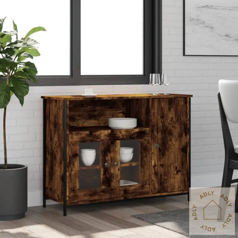 Slitesterkt materiale: Skjenken er laget av konstruert treverk i høy kvalitet med jevn og pen overflate. Det gir ikke bare et stilig uttrykk, men sørger også for styrke, stabilitet og god motstand mot fuktighet – en praktisk løsning for deg som ønsker møbler til hjemmet som varer lenge. Den er lett å holde ren med en fuktig klut, og tåler daglig bruk uten problemer.Rikelig med lagringsplass: Oppbevaringsskapet har godt med plass til alt du måtte ha bruk for i hverdagen, som servise, bøker eller dekor. Her holder du enkelt orden på det du trenger å ha for hånden, og alt føles ryddig og oversiktlig.Visningsfunksjon: Den solide toppen på dette sideskapet gjør det enkelt å sette frem pynt, bilder, vaser eller små grønne planter som gir liv til rommet.Justerbare føtter: Med fire justerbare føtter med plastputer står møblet trygt selv på ujevnt underlag. Disse justerbare føttene sørger for jevn stabilitet og beskytter gulvet mot riper, noe som gir ekstra trygghet når du plasserer skjenken i ulike rom.Advarsel: