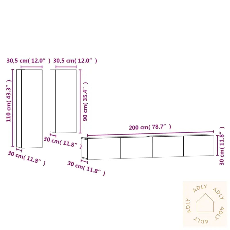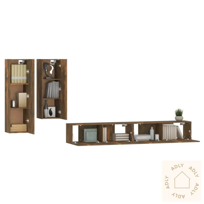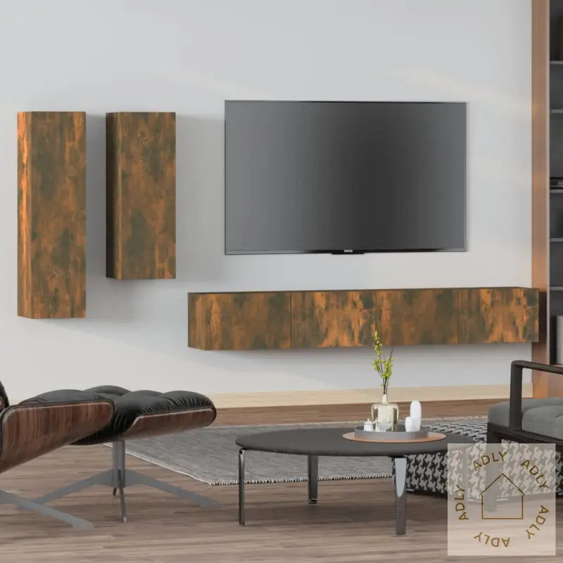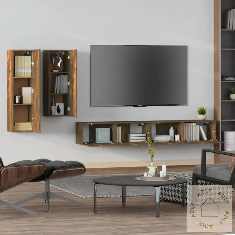 Skrue(r) og plugg(er) for veggmontering følger ikke med. Pass på å bruke festemidler som er riktig tilpasset dine vegger. Er du usikker, anbefales det å spørre en fagperson. Følg instruksjonene nøye ved montering.Alle produktene leveres med en detaljert monteringsveiledning som gjør monteringen enkel og oversiktlig.Farge: Røkt eik – en varm, tidløs farge som gir en lun atmosfære til stua og matcher annen type møbler til hjemmet.Materiale: Konstruert treLeveransen inneholder:1 x TV-benk: 30,5 x 30 x 110 cm (L x B x H)1 x TV-benk: 30,5 x 30 x 90 cm (L x B x H)2 x TV-benker: 100 x 30 x 30 cm (L x B x H)Dette TV-benksettet gir deg ikke bare et stilrent uttrykk, men sørger også for at du har praktiske løsninger til lagring og organisering av alt underholdningsutstyr. Et smart valg for deg som ønsker møbler med funksjon og design!