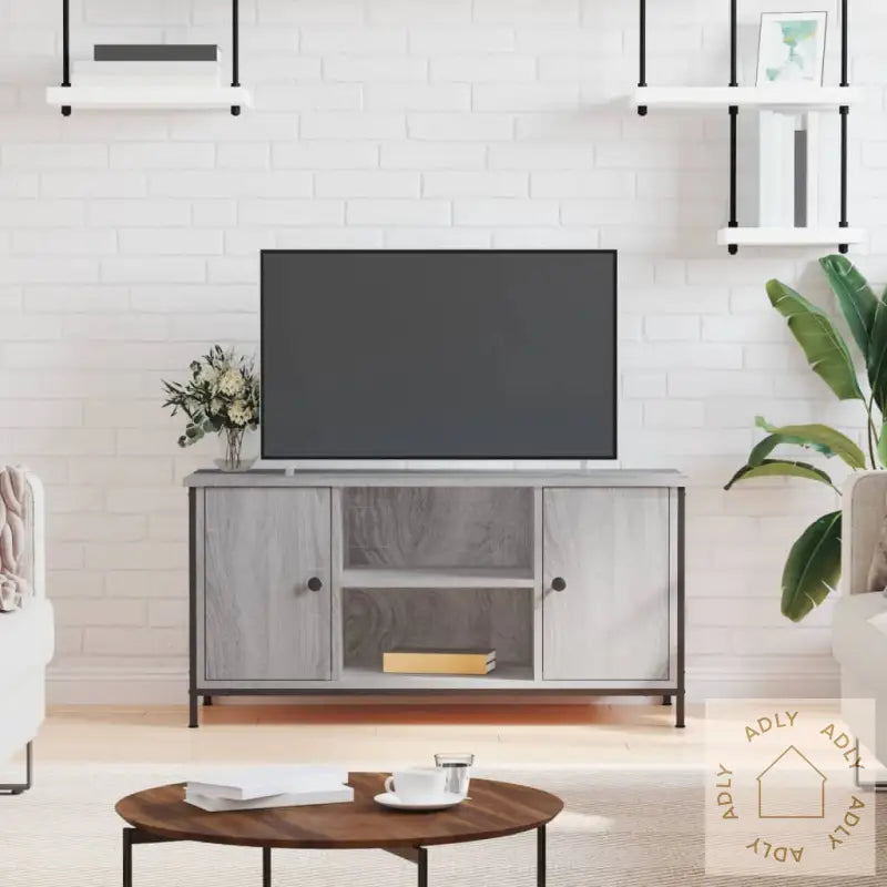 Slitesterkt materiale: Benken er laget av konstruert treverk av høy kvalitet med en jevn og attraktiv overflate. Dette gjør den ekstra solid, motstandsdyktig mot fuktighet, og sørger for at du får et robust møbel som varer lenge – ideelt når du velger nye møbler til hjemmet.Rikelig med lagringsplass: Med 2 rom bak dører og 2 åpne hyller gir denne TV-benken deg mulighet til å holde både DVD-spillere, spillkonsoller, streamingenheter og andre medieenheter samlet og oversiktlig plassert. Oppbevar favorittene dine lett tilgjengelig, samtidig som alt ser pent og ryddig ut.Stilige jernføtter: De solide føttene i jern gir denne benken en trendy, industriell touch, samtidig som de sørger for solid stabilitet uansett gulvtype. Dette gir møbelet et unikt uttrykk og gjør det enkelt å matche med både moderne og klassiske stiler.Perfekt visningsflate: Topp-platen er stødig og egner seg utmerket til å vise frem dekor som bilderammer, planter, eller små pyntegjenstander og lamper. Benytt dette møbelet til å fremheve din personlige stil på en enkel måte, enten hjemme eller på hytta.Advarsel: