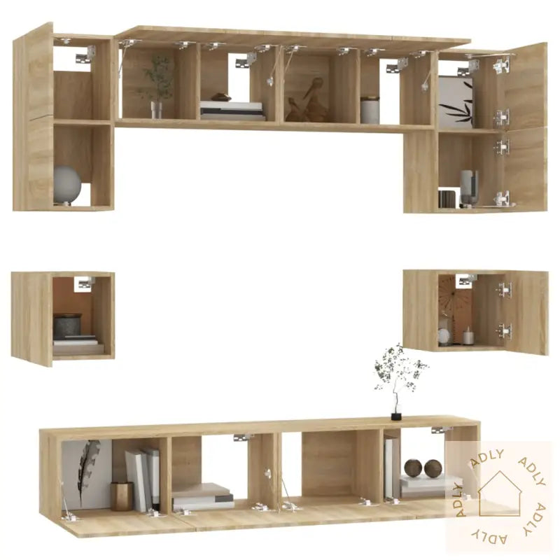Skruer og plugger for innfesting i vegg følger ikke med. Velg skruer og plugger som passer din veggtype for trygg montering. Spør gjerne fagfolk om hjelp, og les alltid monteringsveiledningen grundig.Hver eske inneholder enkel monteringsinstruks, så det går fort å få benkene på plass.Farge: sonoma eikMateriale: konstruert treLeveransen inneholder:4 x TV-benker: 60 x 30 x 30 cm (B x D x H)2 x TV-skap: 80 x 30 x 30 cm (B x D x H)2 x TV-benker: 30,5 x 30 x 30 cm (B x D x H)