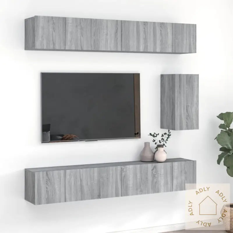 Skrue(r) og plugg(er) for montering i vegg følger ikke med. Velg passende skruer og plugger for veggtypen din, og søk profesjonell hjelp hvis du er usikker. For et trygt og sikkert resultat, følg instruksjonene nøye under monteringen.Alle produktene leveres med en detaljert monteringsveiledning, noe som gjør det enkelt å sette opp TV-benken selv hjemme.Farge: grå sonomaMateriale: konstruert treMål tv-skap (med 2 dører): 60 x 30 x 30 cm (B x D x H)Mål tv-skap (med 1 dør): 30,5 x 30 x 60 cm (B x D x H)Leveransen inneholder:6 x TV-skap (med 2 dører)1 x TV-skap (med 1 dør)