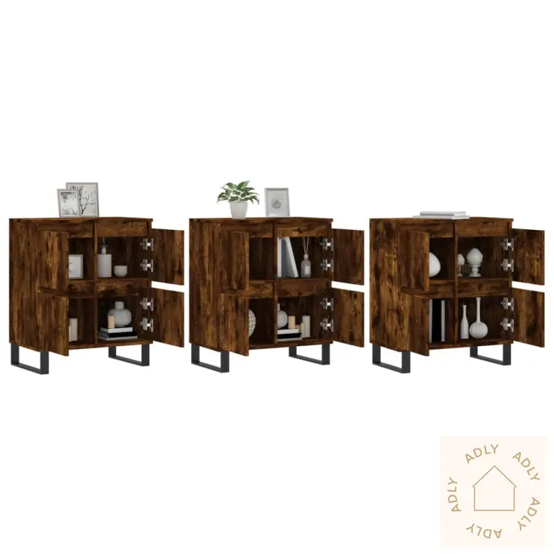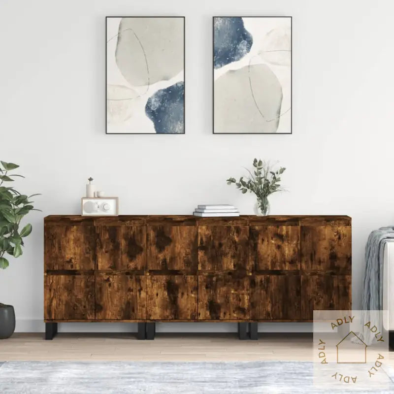 Slitesterkt materiale: Skjenkene er laget av konstruert treverk, som ikke bare gir en elegant og glatt overflate, men også sørger for holdbarhet, stabilitet og god motstand mot fuktighet – egenskaper som virkelig gjør disse møblene praktiske for daglig bruk.Rikelig med lagringsplass: Med generøs lagringsplass får du god mulighet til å organisere alt fra servise til andre nødvendigheter. Dette gjør det enkelt å holde ting ryddige og lett tilgjengelige, samtidig som skapet hjelper til med å frigjøre plass i resten av rommet.Visningsfunksjon: Toppen av oppbevaringsskapet byr på en flott flate for å vise frem favorittbilder, dekorative gjenstander eller friske blomster, slik at du enkelt kan gi rommet ditt et personlig preg med møbler som fremhever din stil.Advarsel: