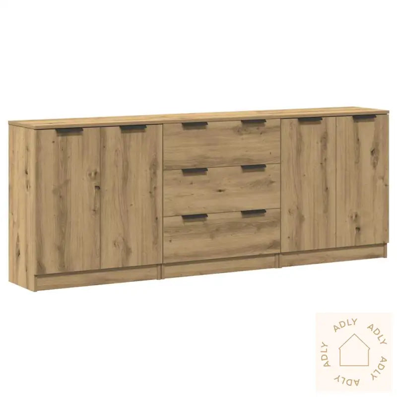 For å forhindre at produktet velter, må det brukes med den medfølgende festeanordningen for sikkerhet.Farge: artisan eikMateriale: konstruert treSamlet mål: 180 x 30 x 70 cm (B x D x H)Mål (hver): 60 x 30 x 70 cm (B x D x H)Montering kreves: jaLeveransen inneholder:2 x skjenk med dør1 x skjenk med skuff