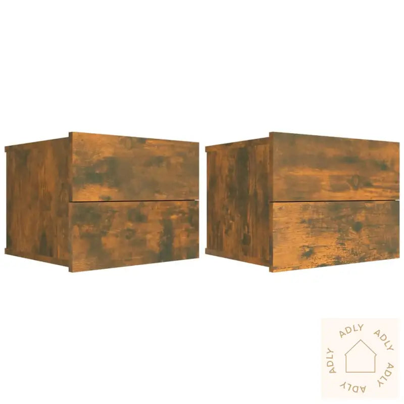 Solid materiale: Nattbordene er laget av konstruert treverk av svært høy kvalitet. Dette materialet har en jevn finish og er kjent for styrke, stabilitet og god motstand mot fuktighet. Du får stødighet og lang levetid, noe som gjør dem til et smart valg blant møbler som skal vare.Rikelig med lagringsplass: Hvert nattbord har 2 romslige skuffer hvor du kan plassere blader, bøker, fjernkontroller og småting du ønsker å ha i nærheten av sengen. Det hjelper deg å holde ting ryddig og organisert, og gjør det enkelt å finne det du trenger akkurat når du vil slappe av.Plassbesparende design: Takket være det vegghengte designet er disse nattbordene supre for mindre rom eller for deg som ønsker å bevare så mye gulvplass som mulig. Det gir deg ekstra frihet når du innreder med andre møbler som bokhyller og stående hyller, uten å gå på kompromiss med lagringsplassen.Merk: