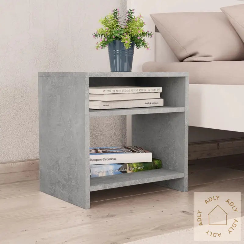 Løft interiøret til et nytt nivå med disse elegante, betonggrå nattbordene. Praktisk, moderne og stilfullt – perfekt valg for deg som setter pris på gjennomtenkte møbler til hjemmet. Leveransen inkluderer to nattbord.