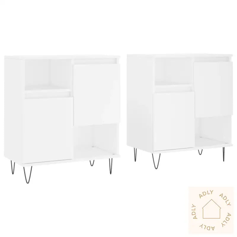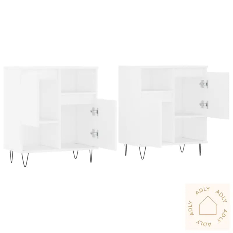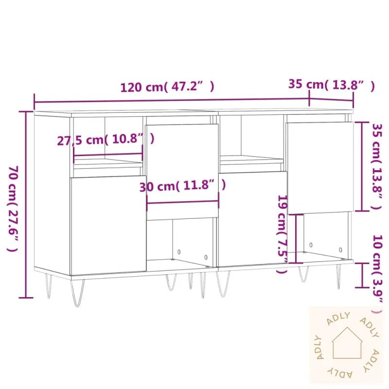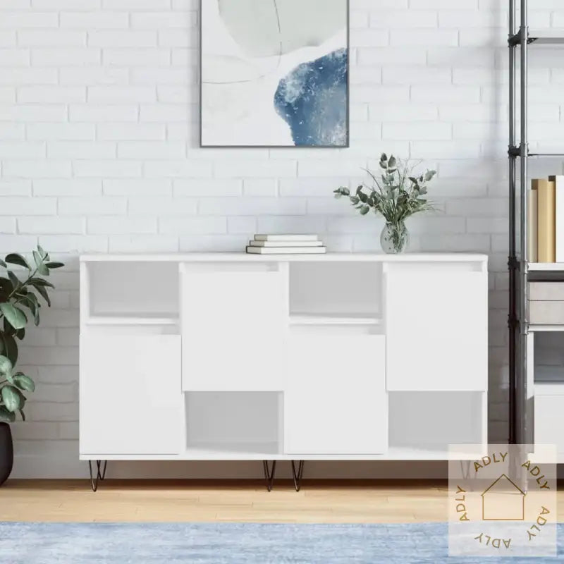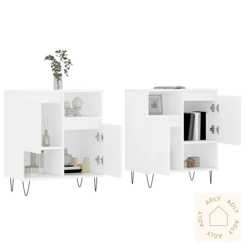 Slitesterkt materiale: Skjenkene er laget av førsteklasses konstruert treverk. Dette materialet gir en jevn, solid overflate, og sørger for at møblene er ekstra stabile, robuste og vannavstøtende. Perfekt hvis du vil investere i holdbare møbler som tåler hverdagsbruk.Rikelig med lagringsplass: Skapene gir deg god plass til å holde orden på alt fra servise til bøker og andre nødvendigheter. Her får du en ryddig løsning hvor alt er samlet på ett sted, lett tilgjengelig når du trenger det.Visningsfunksjon: Du kan bruke toppen av skjenkene til å vise frem personlige favoritter – enten det er bilder, dekorative gjenstander eller en bukett friske blomster. Dette lar deg sette ditt eget preg på rommet og gjør møbelet til en sentral del av hjemmet ditt.Advarsel: