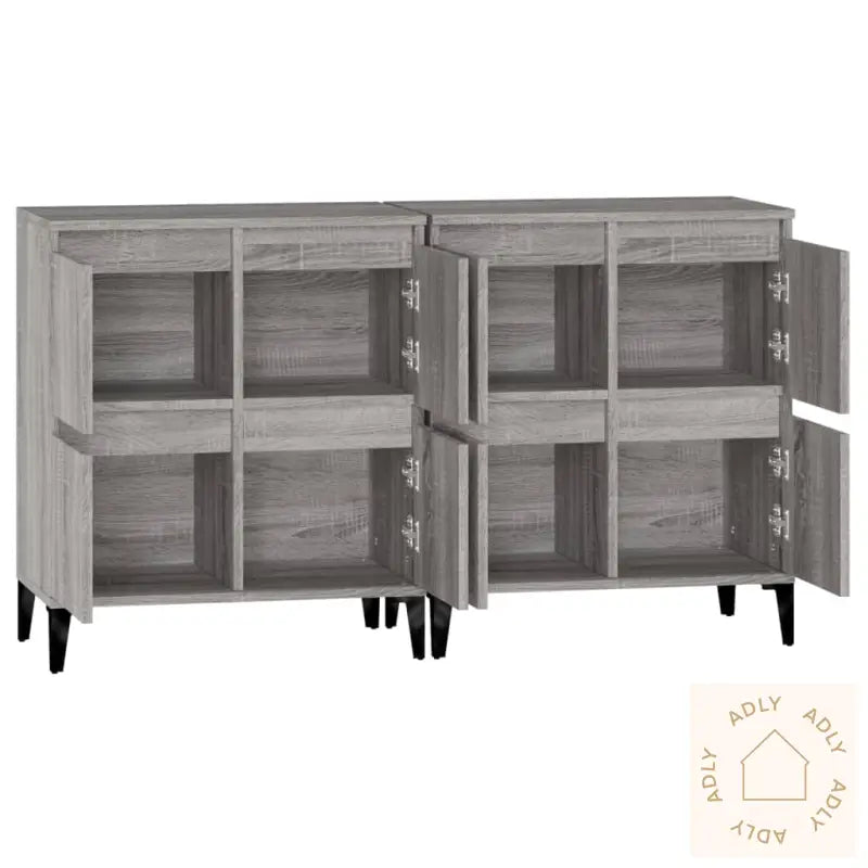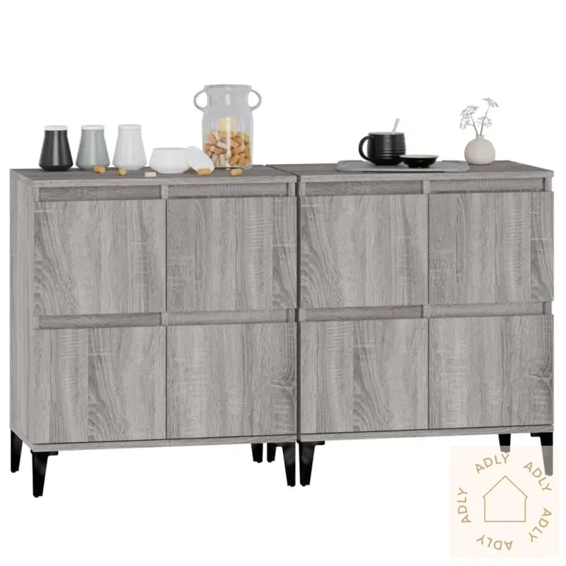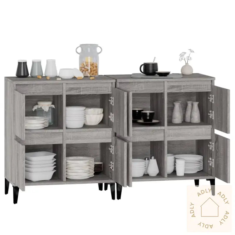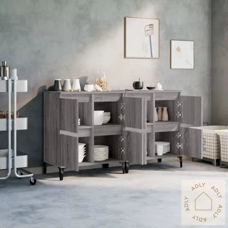 Slitesterkt materiale: Skjenkene er laget av konstruert tre, kjent for sin eksepsjonelle kvalitet. Dette materialet har en glatt overflate, er motstandsdyktig mot fuktighet, og tilbyr både styrke og stabilitet – egenskaper som gjør at dine møbler til hjemmet holder seg flotte lenge. I tillegg er de enkle å rengjøre, kun med en fuktig klut.Rikelig lagringsplass: Med fire rom får du god plass til å lagre og organisere alt fra servise og tørkeruller til hverdagslige nødvendigheter. Dette hjelper deg å holde hjemmet ryddig og oversiktlig, samtidig som viktige ting alltid er lett tilgjengelig.Praktisk og dekorativt: Toppen av skjenken er perfekt for å vise frem dekorative favoritter, fotoalbum, små planter eller personlige minner, slik at du enkelt kan sette et personlig preg på innredningen.Advarsel:
