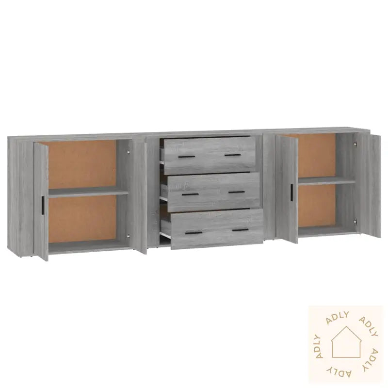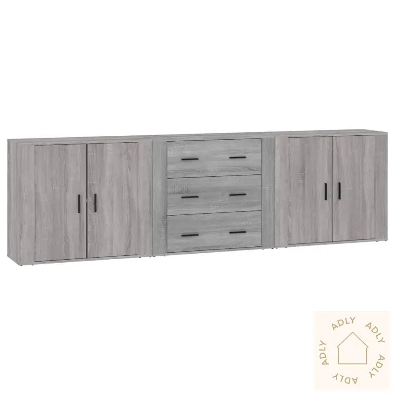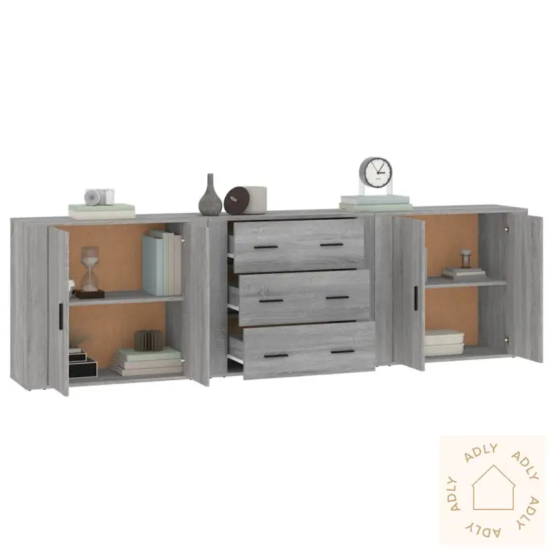 For å sikre at møblene står trygt, må du bruke den medfølgende festeanordningen for å unngå at produktet velter.Farge: Grå sonomaMateriale: Konstruert treMål (hver): 80 x 33 x 70 cm (L x B x H)Leveransen inneholder:3 x skjenkerLegal Documents: