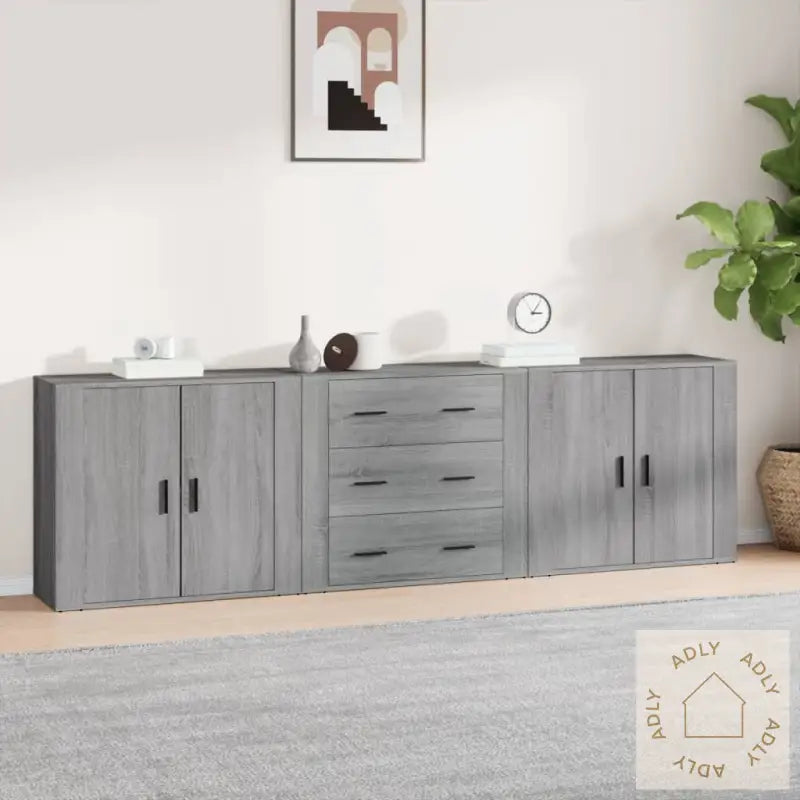 Slitesterkt materiale: Skjenkene er laget av konstruert treverk av høy kvalitet. Overflaten er glatt, slik at de ser pene ut lenge, samtidig som materialet gir styrke, god stabilitet og tåler fuktighet – perfekt hvis du ønsker solide møbler som varer.Rikelig med lagringsplass: Med god plass til oppbevaring får du enkelt orden på alt fra servise til bøker eller daglige nødvendigheter. Disse skjenkene gjør det enkelt å holde hjemmet ditt ryddig og organisert.Utstillingsfunksjon: Toppen av skjenkene egner seg ypperlig for å vise frem pyntegjenstander som bilder, dekorative elementer, blomster eller kanskje noen stilige bokhyller og stående hyller. Dette bidrar til å gi rommet personlighet og ekstra sjarm.Godt å vite: