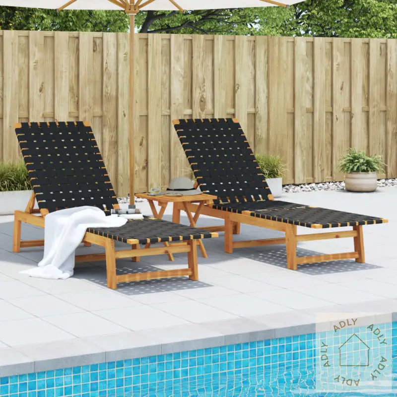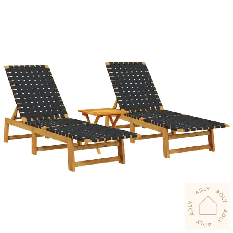 For at dine utemøbler skal holde seg pene år etter år, anbefales det å bruke et vanntett trekk når møblene ikke er i bruk.Montering kreves: jaSolseng:Farger: svart og brunMaterialer: stoff (100% Olefin), heltre akasie med oljefinishMål: 157 x 55 x 60/74/87 cm (L x B x H)Mål (helt utvidet): 201 x 55 x 30 cm (L x B x H)Høyde sete fra bakken: 30 cmRyggstøtte med 4 justerbare posisjonerMaksimal lastekapasitet (per sete): 110 kgBord:Materiale: oljebehandlet heltre akasieMål: 40 x 40 x 40 cm (L x B x H)Leveransen inneholder:2 x solsenger1 x bord