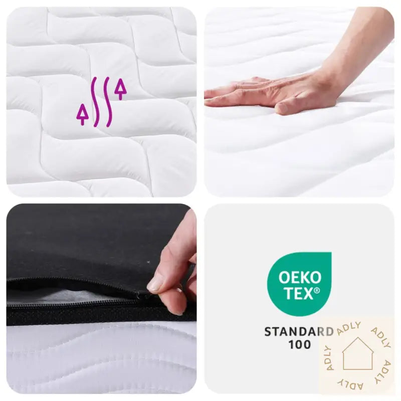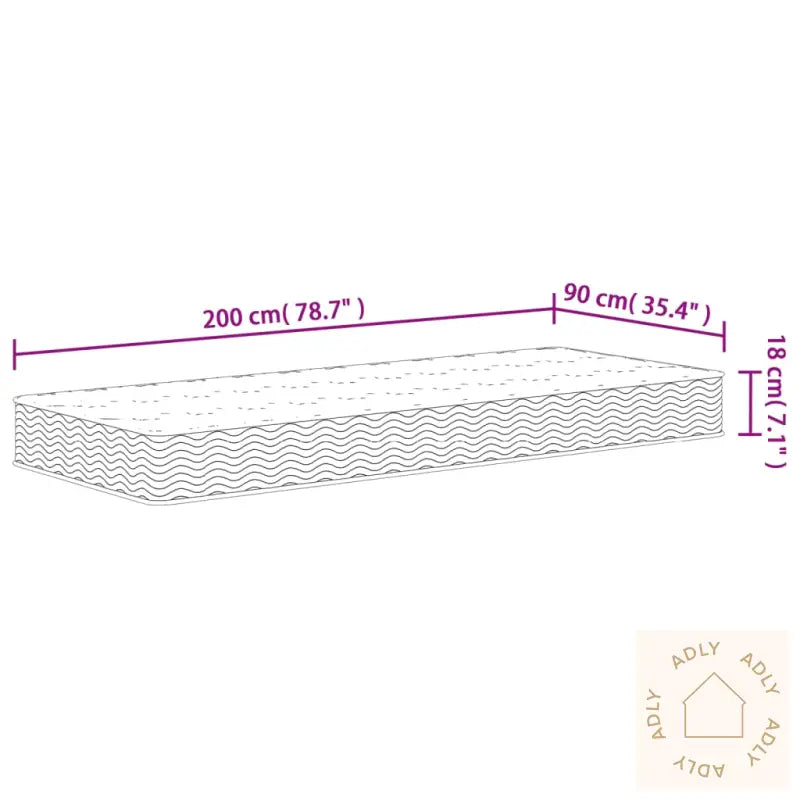 Madrassens trekk kan vaskes i maskin på opptil 40°C, men bør ikke vaskes for ofte for å bevare materialet.Madrassen leveres vakuumpakket og rullet i kompakt boks, så du kan enkelt transportere og sette den opp på soverommet – ideelt for både små og store møbler til hjemmet.Farge: Hvit og svart, tidløs og lett å kombinere med alle typer møbler eller utendørsmøbler hvis du ønsker ekstra komfort i hagestuen.Materialer: Semsket vevd stoff og slitesterkt 100% polyester-stoff.Fyll: Bonellfjær og skum gir både støtte og mykhet.Mål: 90 x 200 x 18 cm (B x L x T).Hardhet: Medium – balansert for de fleste behov.Kviltingmønster gir madrassen et flott visuelt preg og ekstra komfort.