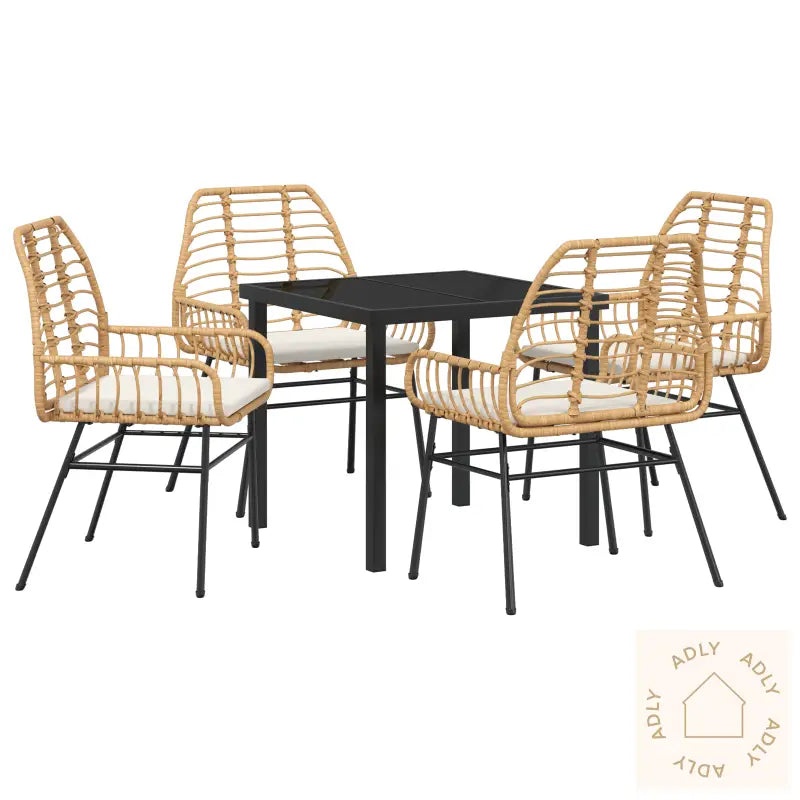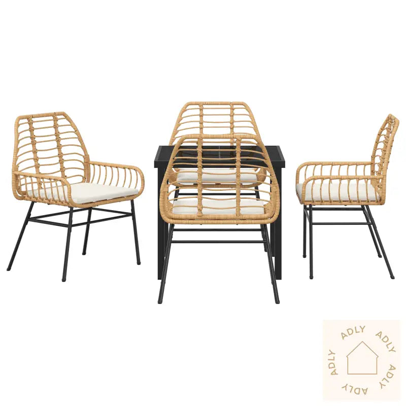 Enkel rengjøring: Du slipper stress med rengjøring – det eneste som trengs er en fuktig klut, og møblene holder seg freshe selv etter mye bruk i norske værforhold.Antall deler: 5Farge: BrunForm: RektangulærMateriale: Syntetisk polyrotting (PE), perfekt for hagemøblerFinish: PulverlakkertBruksområde: Kun utendørsTrekk: Ikke inkludertRom: Hage og terrasseBatteri: NeiHodestøtte: NeiKapasitet: 4-seterMaks personer: 4Maks vekt per sete: 110 kgBenhøyde: 44 cmSetedybde: 48 cmSitteplasser pr. stol: 1Swings: NeiStige: NeiLevering inkluderer: 4 x stol, 1 x bordMontering nødvendig: JaAnbefalt antall personer til montering: 2