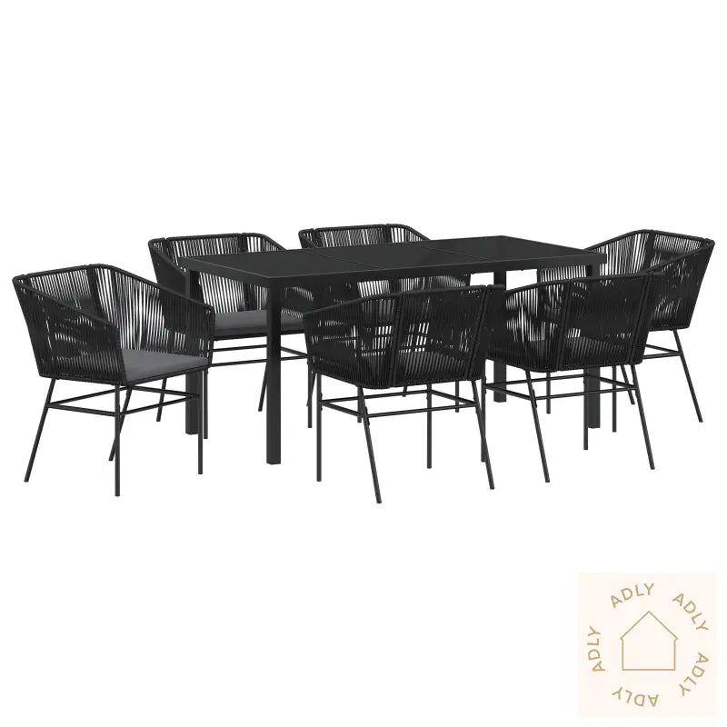 Antall produkter: 4 Farge: Svart Form: Rektangulær Materiale: Syntetisk polyrotting Finish: Pulverlakkert Innendørs/Utendørs: Innendørs / Utendørs Trekk inkludert: Ja Rom: Hagen og terrassen Batterier inkludert: Nei Hovedgavl inkludert: Nei Kapasitet: 110 Maks antall personer: 1 Maksimal vekt: 110 kg Overflate høyde: 5 cm Bein høyde: 45.5 cm Sittedybde: 47.5 cm Sittekapasitet: 1 Gynger: Nei Stige: Nei Merke: Leveringen inneholder: 2 hagemøbler Montering kreves: Ja Anbefalt antall personer for montering: 2